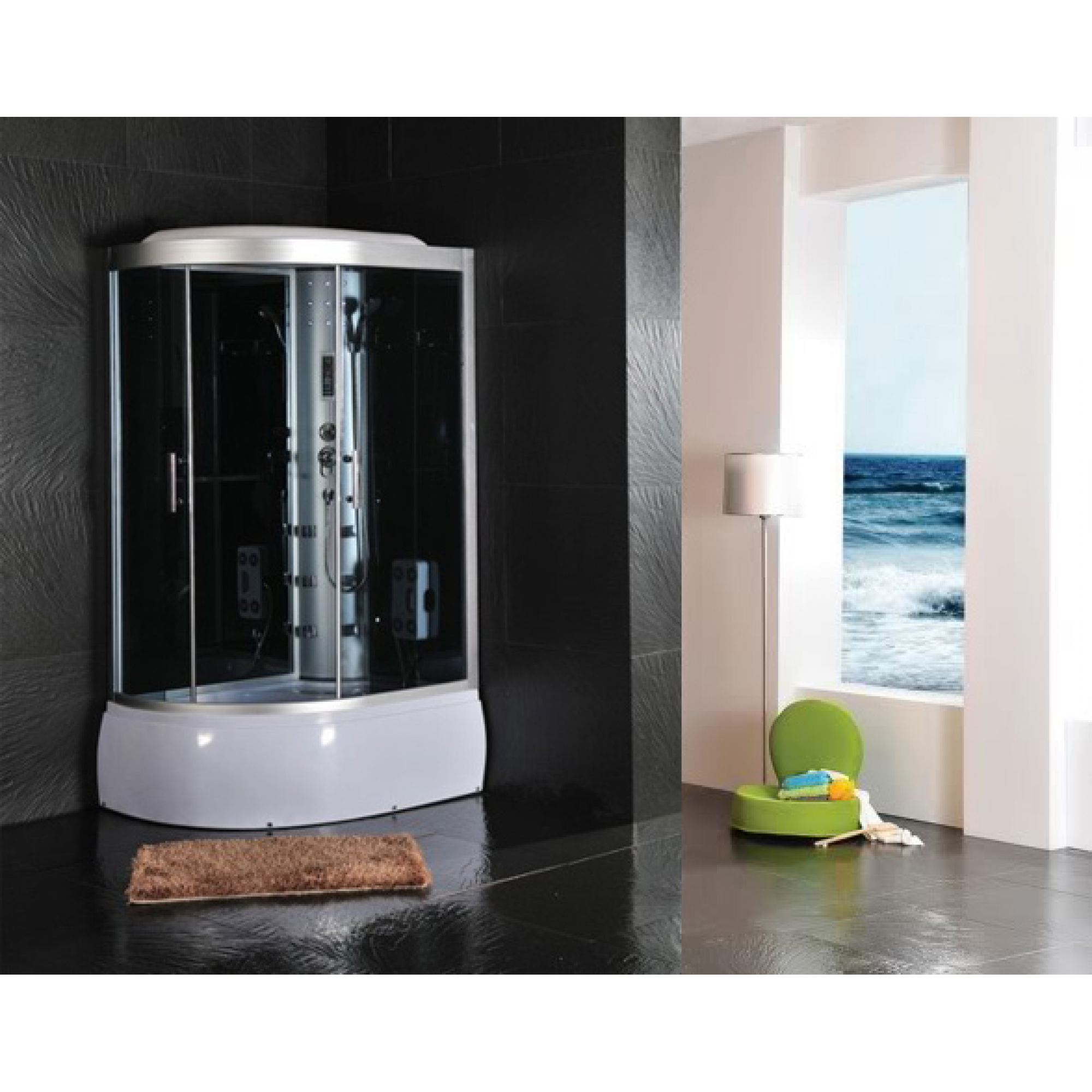 Il pannello di controllo digitale touchscreen, la chiusura delle porte magnetica, le rifiniture in alluminio satinato, il vetro temperato ed oscurato da 6,5 mm anti infortunio, il doccione superiore illuminato per Cromoterapia, il massaggio plantare, la sauna, l’apparecchiatura telefonica in vivavoce, la radio FM e la predisposizione per i compact disc sono alcune delle spettacolari funzionalità che contraddistinguono questa cabina.