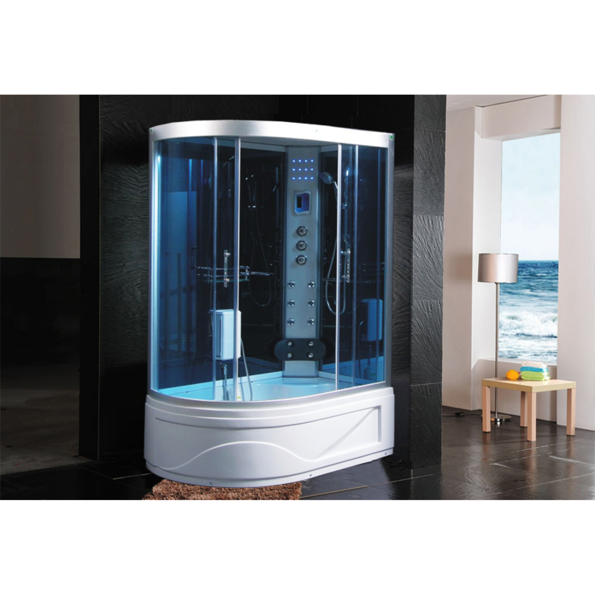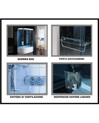 Il pannello di controllo digitale touchscreen, la chiusura delle porte magnetica, le rifiniture in alluminio satinato, il vetro temperato ed oscurato da 6,5 mm anti infortunio, il doccione superiore illuminato, il massaggio plantare, la sauna, l’apparecchiatura telefonica in vivavoce, la radio FM e la predisposizione per i compact disc sono alcune delle spettacolari funzionalità che contraddistinguono questa cabina.