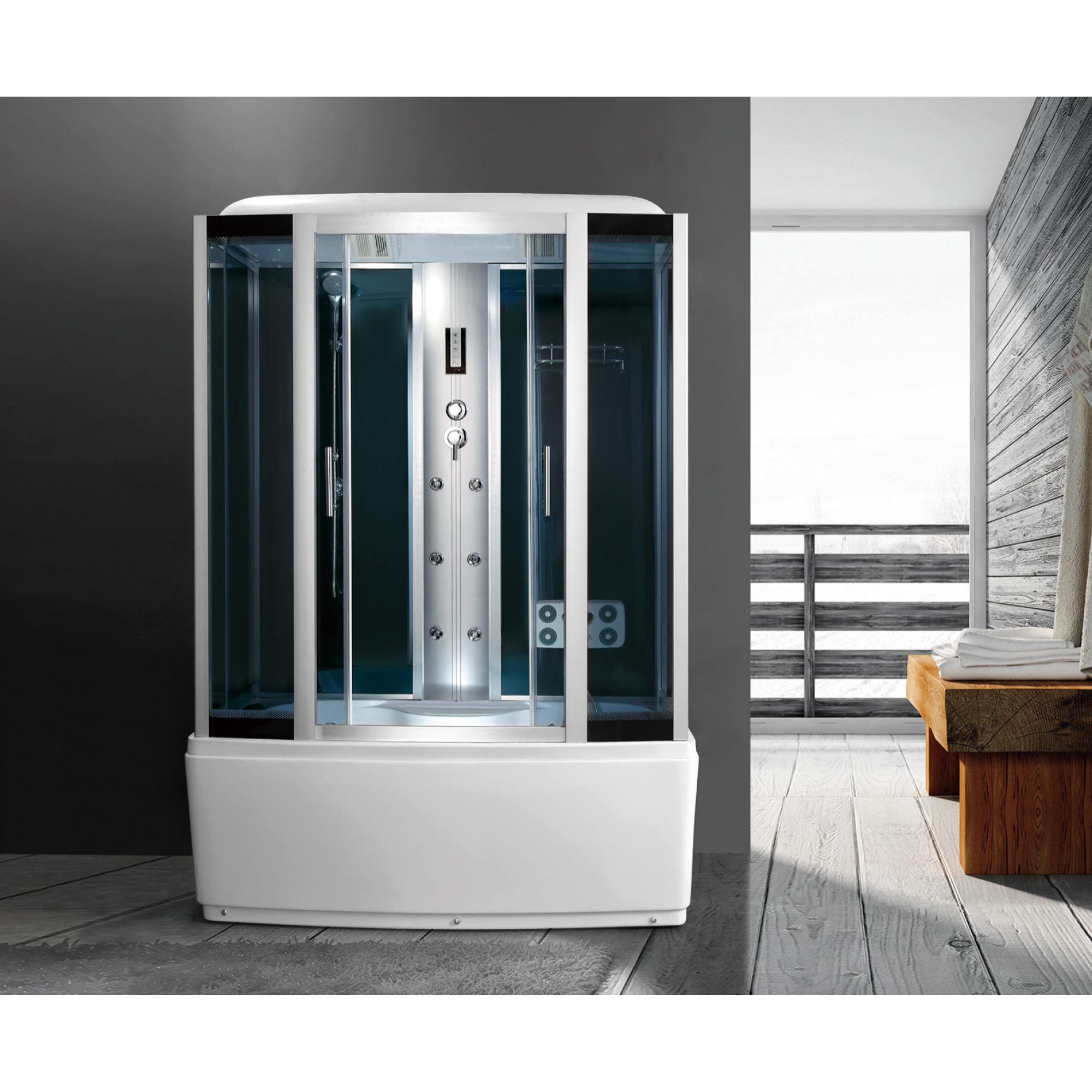 Cabina Idromassaggio di ultima generazione con Vasca Idromassaggio incorporata, misure 150x88, con Bagno Turco, Sauna, Cromoterapia, Ozonoterapia, Vetro Temperato Oscurato da 6,5mm, Massaggio Plantare, Telefono con Vivavoce e collegamento Bluetooth.