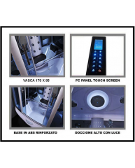 Il pannello di controllo digitale touchscreen, la chiusura delle porte magnetica, le rifiniture in alluminio satinato, il vetro temperato ed oscurato da 6,5 mm anti infortunio, il doccione superiore illuminato, il massaggio plantare, la sauna, l’apparecchiatura telefonica in vivavoce, la radio FM e la predisposizione per i compact disc sono alcune delle spettacolari funzionalità che contraddistinguono questa cabina.