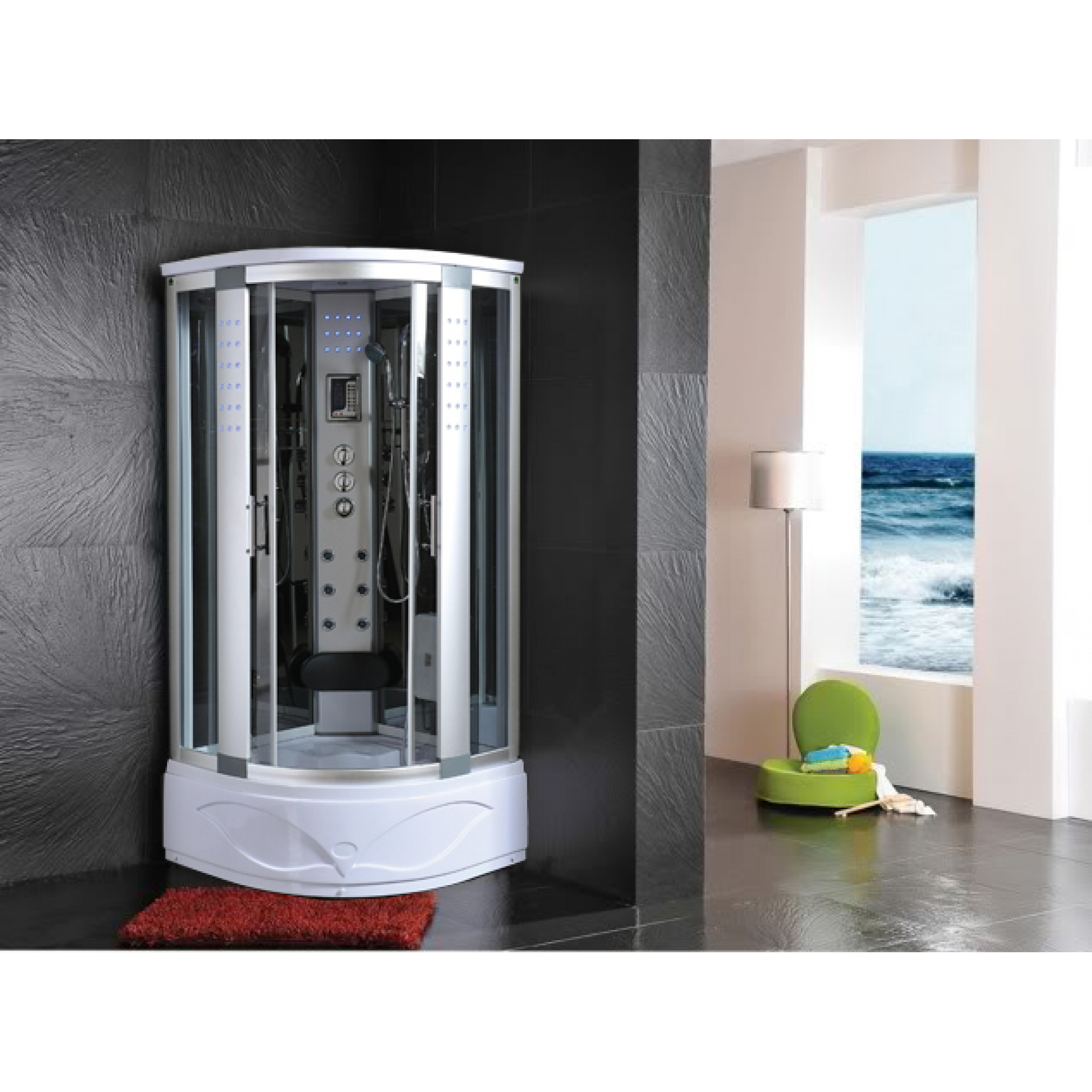 Il pannello di controllo digitale touchscreen, la chiusura delle porte magnetica, le rifiniture in alluminio satinato, il vetro temperato ed oscurato da 6,5 mm anti infortunio, il doccione superiore illuminato, il massaggio plantare, la sauna, l’apparecchiatura telefonica in vivavoce, la radio FM e la predisposizione per i compact disc sono alcune delle spettacolari funzionalità che contraddistinguono questa cabina.