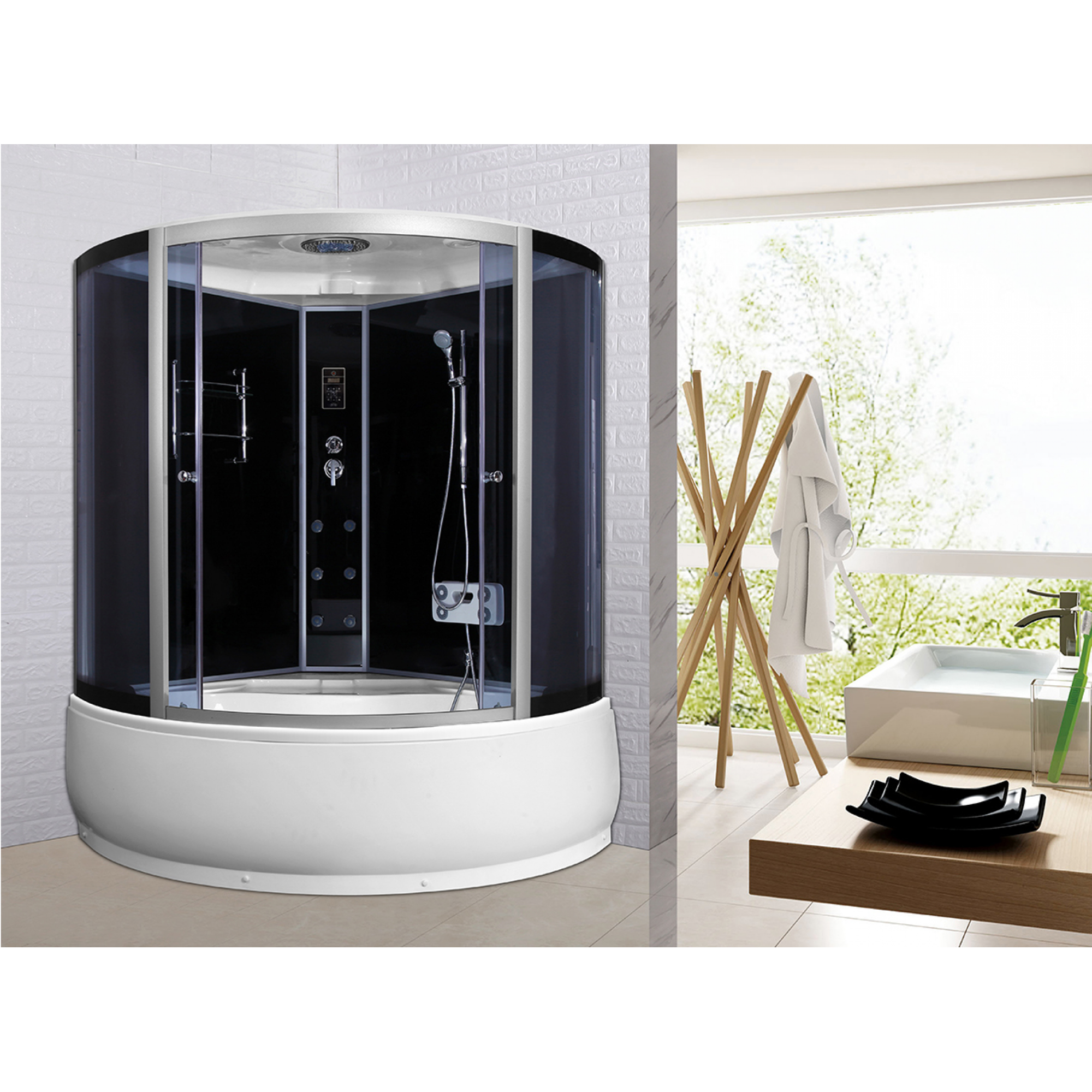 Cabina Idromassaggio di ultima generazione con Vasca incorporata, misure 135x135, con Cromoterapia, Ozonoterapia, Vetro Temperato Oscurato da 6,5mm, PC Panel Touch Screen, Collegamento Bluetooth ed altri optional descritti nel dettaglio in inserzione.