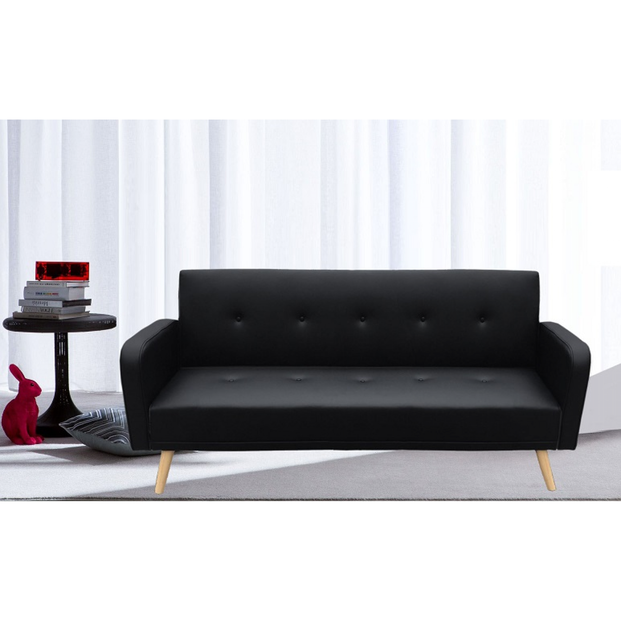 DIVANO LETTO LITZ RECLINABILE LUSSO ECOPELLE NERO PIEDI LEGNO