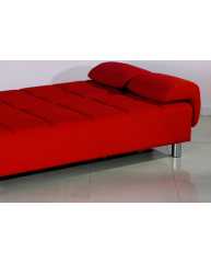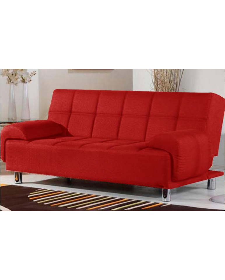 Divano Letto Reclinabile in Ecopelle di Alta qualità , colore Rosso, tre posti a sedere, Letto aperto da una piazza e 1/2 con sistema antiribaltamento, comprensivo di Cuscini in ecopelle. Piedini in Metallo.