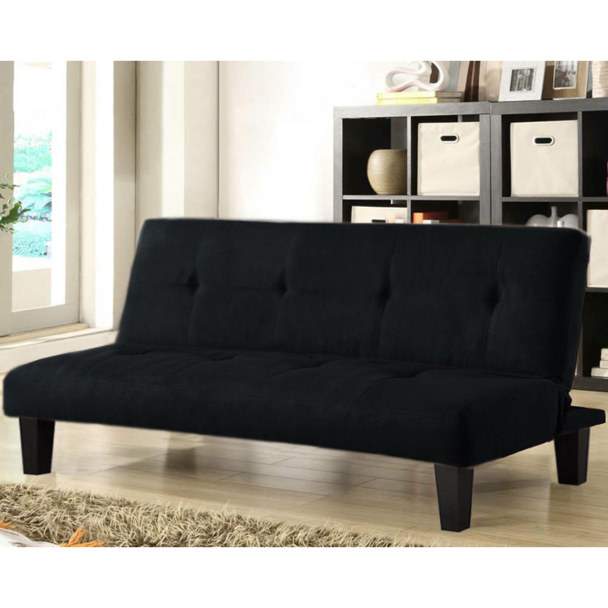 DIVANO LETTO CASA - UFFICIO REGOLABILE MICROFIBRA NERO SPESSORATO