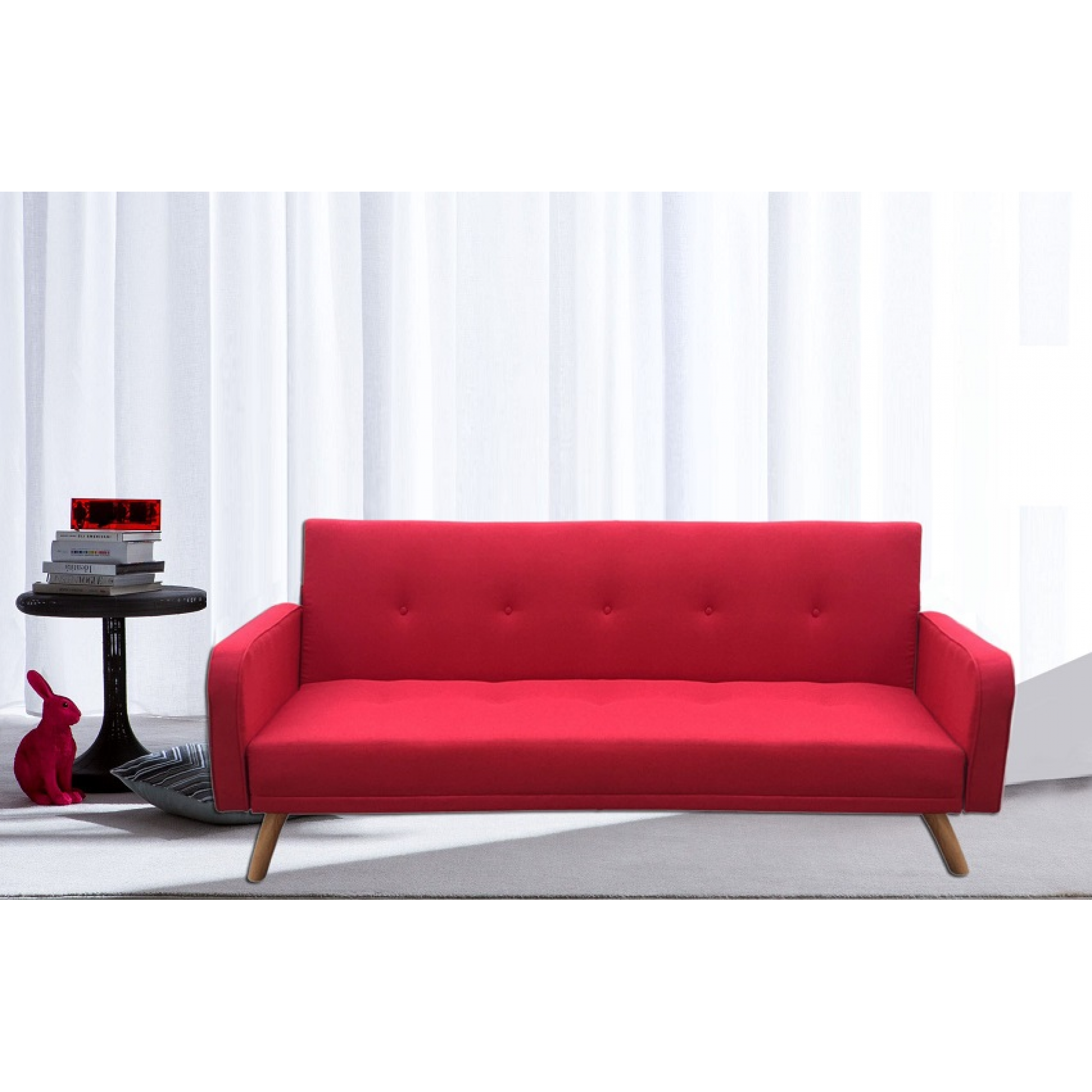 DIVANO LETTO IN MICROFIBRA ROSSO DAL DESIGN VINTAGE - NUOVO STILE RETRÒ - PRODOTTO DI QUALITÀ SUPERIORE. UNICI A VENDERLO IN ITALIA CON UN PREZZO COSÌ VANTAGGIOSO. VALORE NEI NEGOZI OLTRE EURO 560,00. STRUTTURA SOLIDA E PIEDI IN LEGNO, QUALITA' TESSUTO MICROFIBRA SUPERIORE, MODELLO PIU' LUSSUOSO!