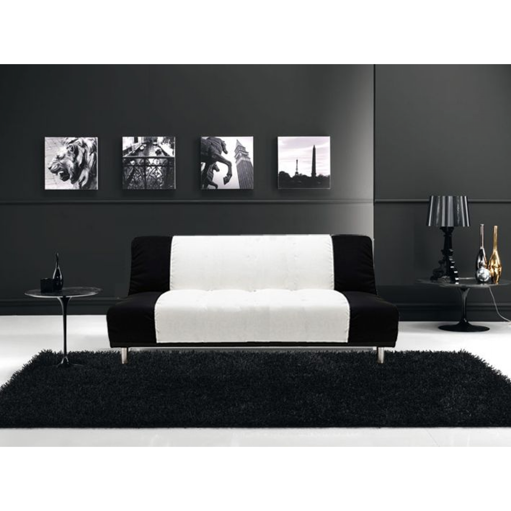 DIVANO IN MICROFIBRA BIANCO E NERO 3 POSTI
