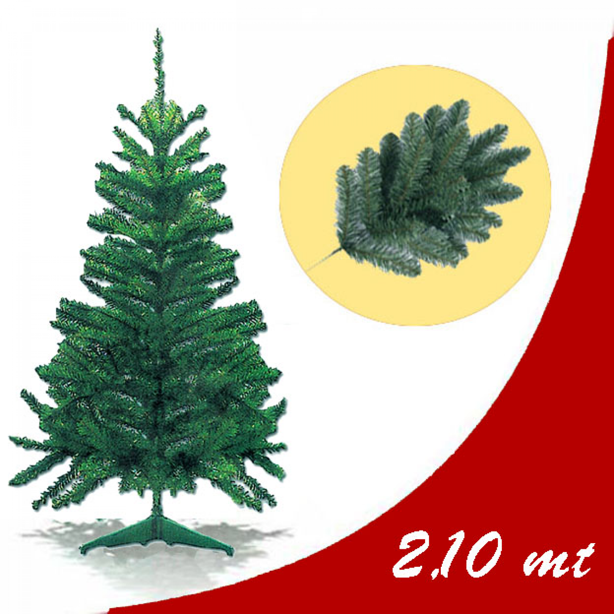 Albero di Natale alto 2,10 mt , realizzato con materiale di ottima qualità ad elevato numero di rami orientabili a piacere, che