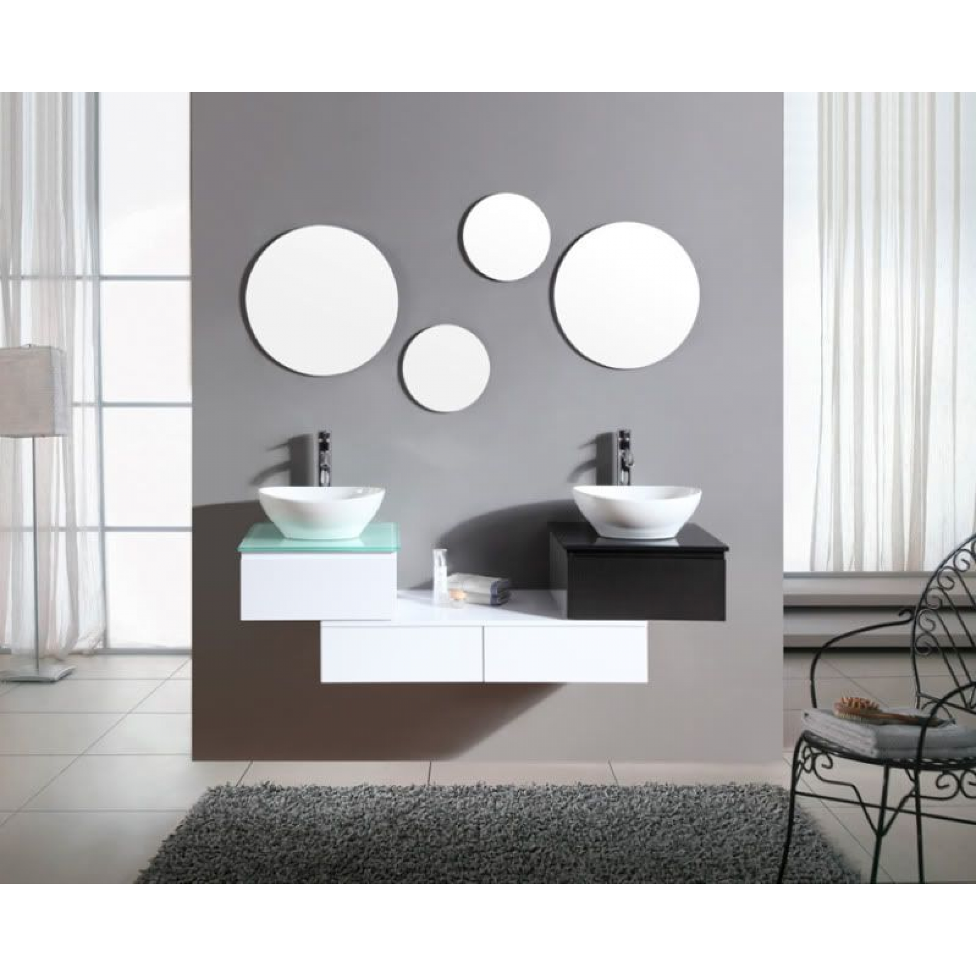 MOBILE DA BAGNO PENSILE DA 150cm DOPPIO, COLORE BIANCO E NERO LACCATO LUCIDO, DESIGN MODERNO ED ELEGANTE, DOPPIO LAVABO, SPECCHIO E RUBINETTERIA INCLUSI NEL SET.