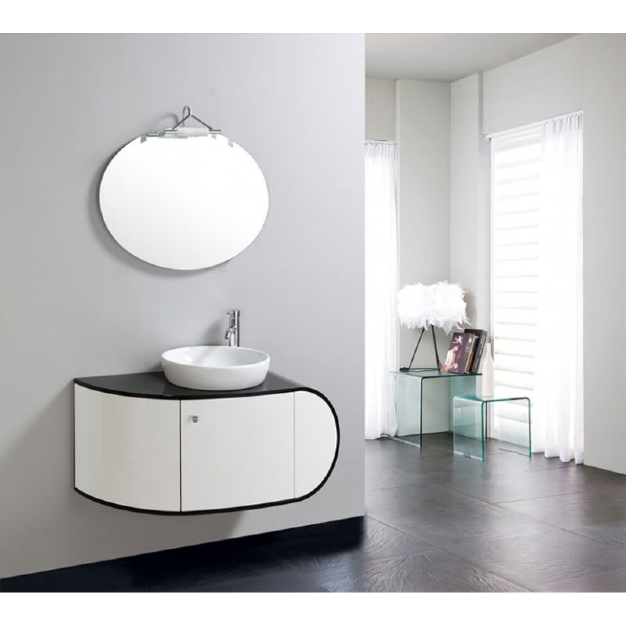 Mobile da Bagno Pensile Design, da 100cm, Completo di tutto, Mobile colore Bianco e Nero, Lavabo, Specchio con Applique e Rubinetteria.
