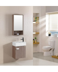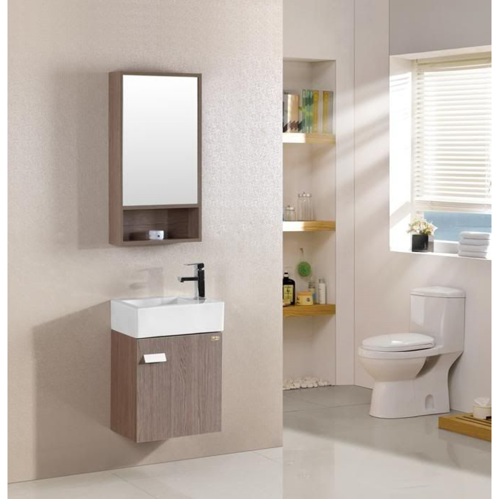 Mobile da Bagno Pensile Design Minimal, da 46cm, Completo di tutto, Mobile colore Acero, Lavabo, Specchio con Mensola e Rubinetteria.