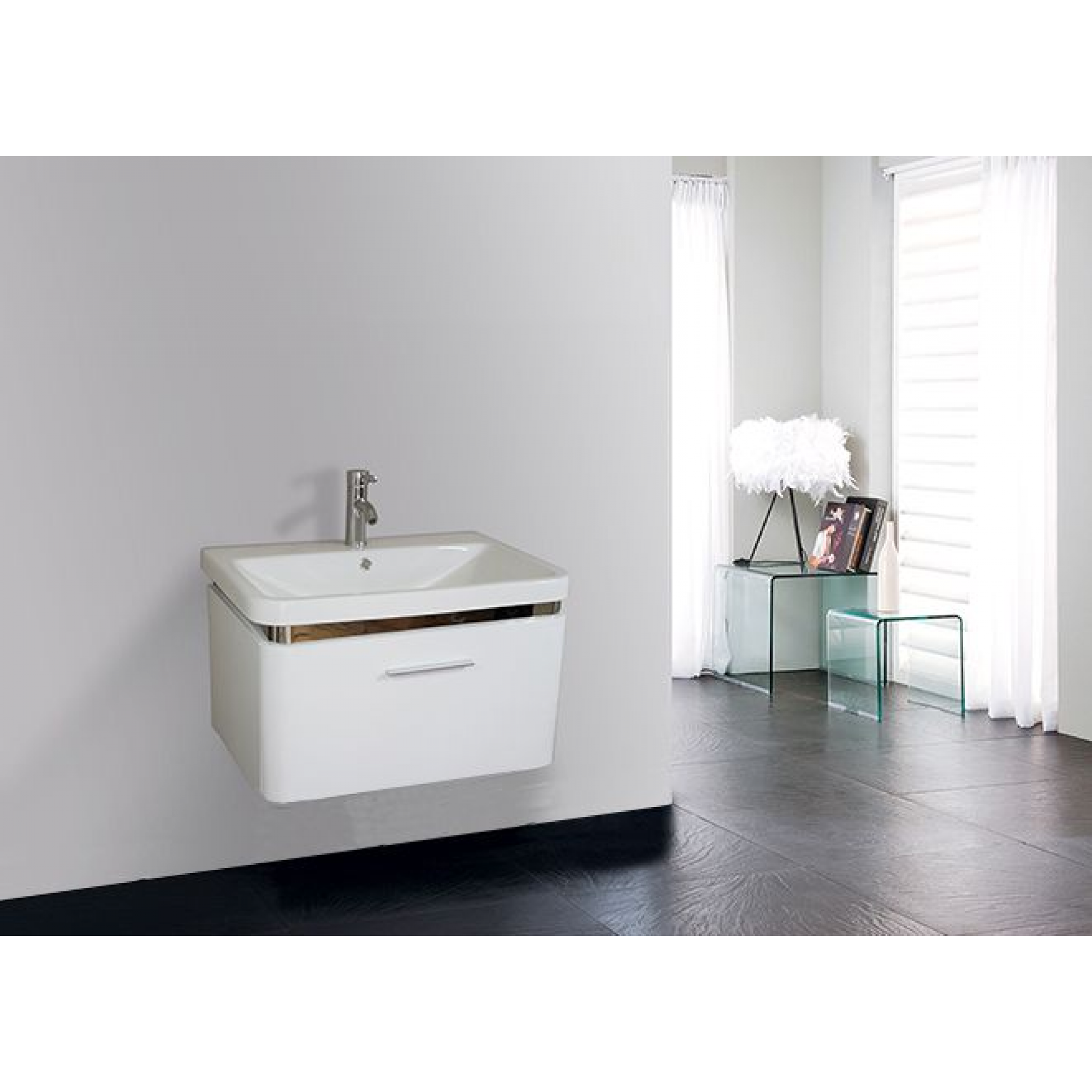 Mobile da Bagno Pensile Design, da 70cm, Completo di tutto, Mobile con Cassettone, colore Bianco, Lavabo e Rubinetteria.