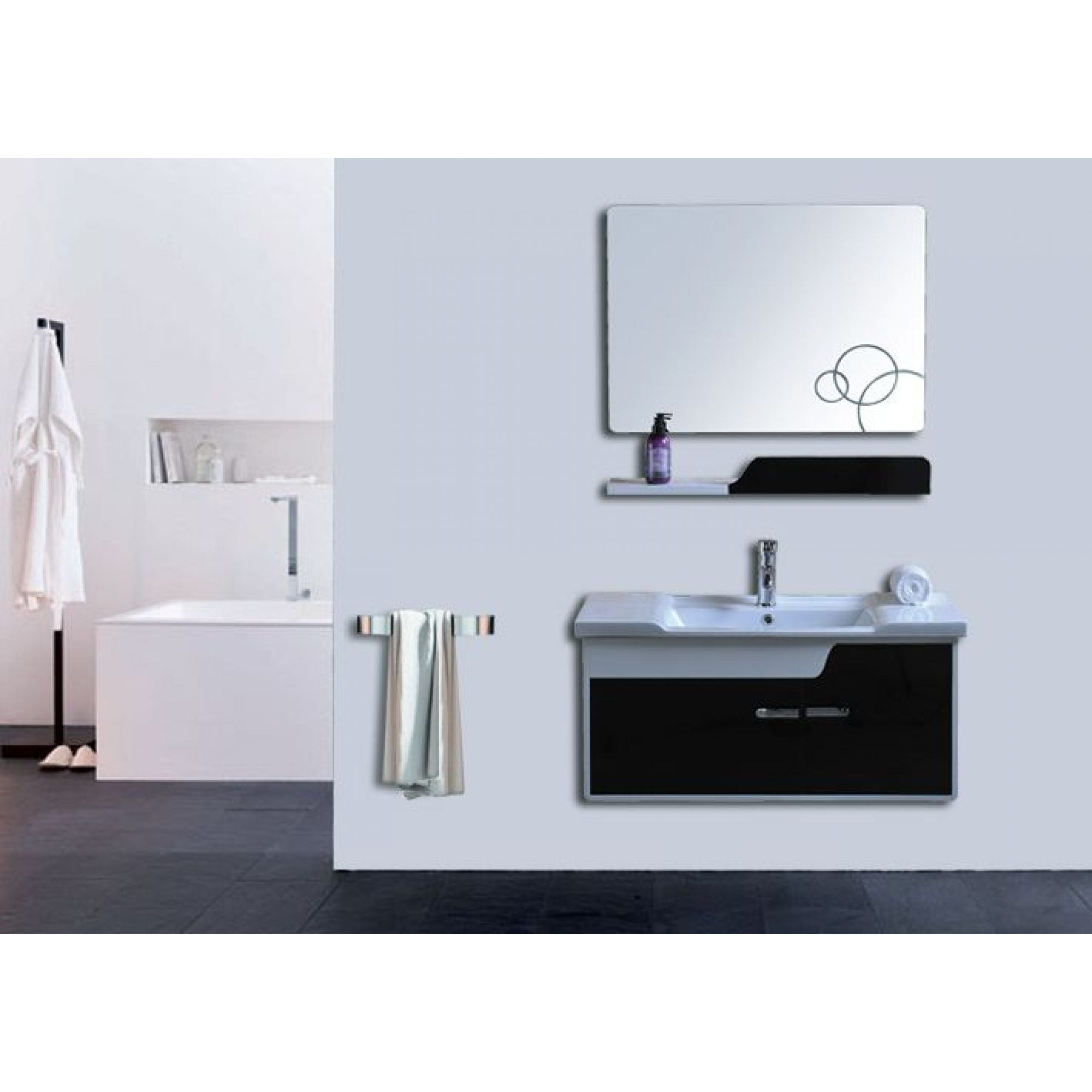 MOBILE BAGNO PENSILE BIANCO NERO DA 90 CM COMPLETO