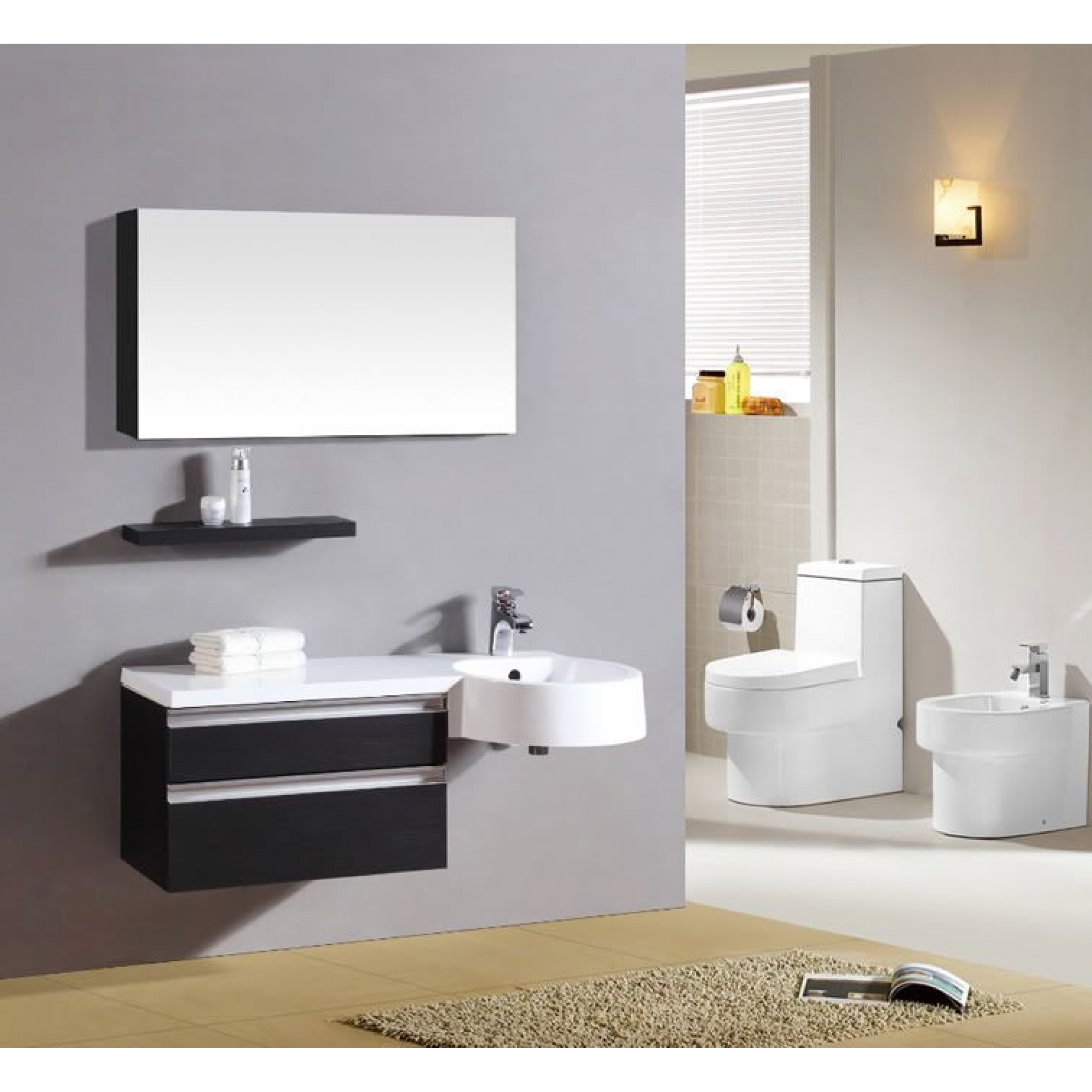 Mobile da Bagno Pensile Design, da 100cm, Colore Nero, Completo di tutto, Lavabo, Specchio, Mensola e Rubinetteria.