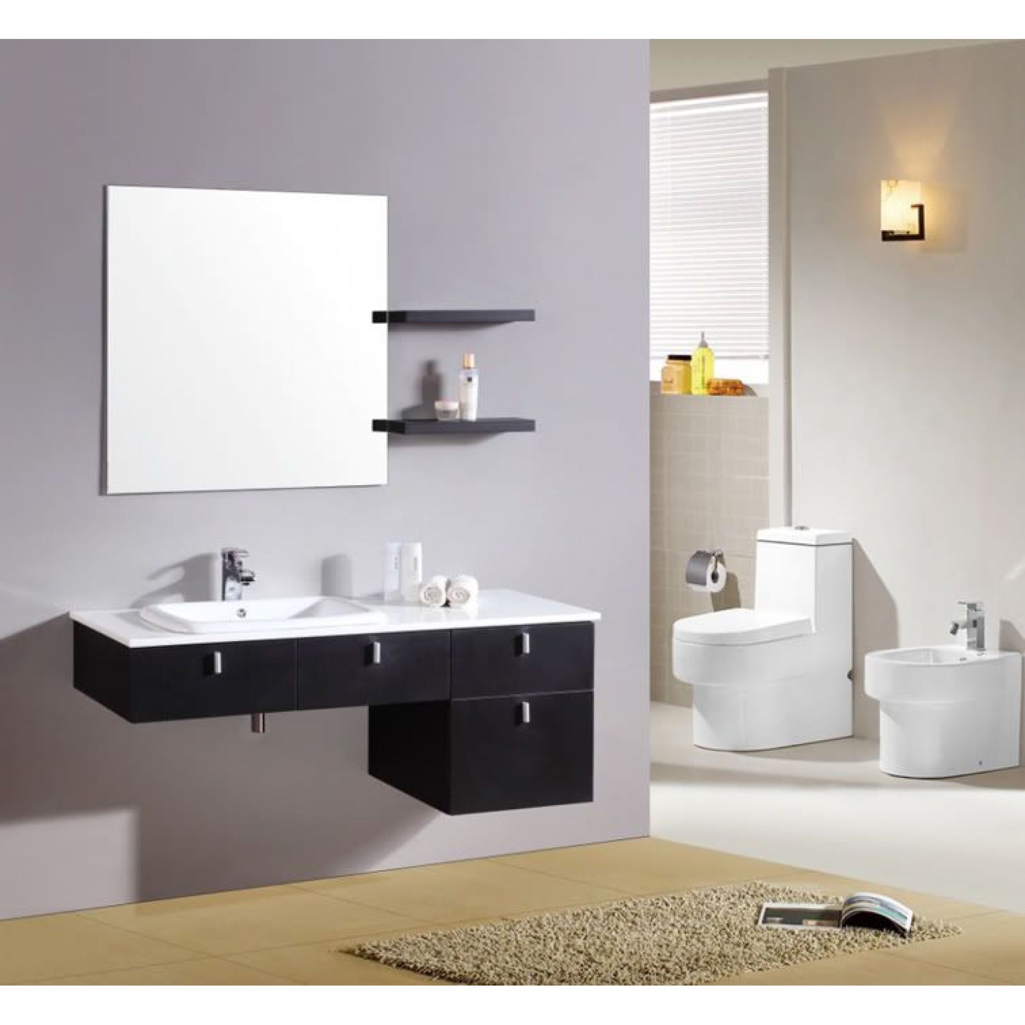 Mobile da Bagno Pensile Design, da 120cm, Colore Nero, Completo di tutto, Lavabo, Specchio, Mensole e Rubinetteria.