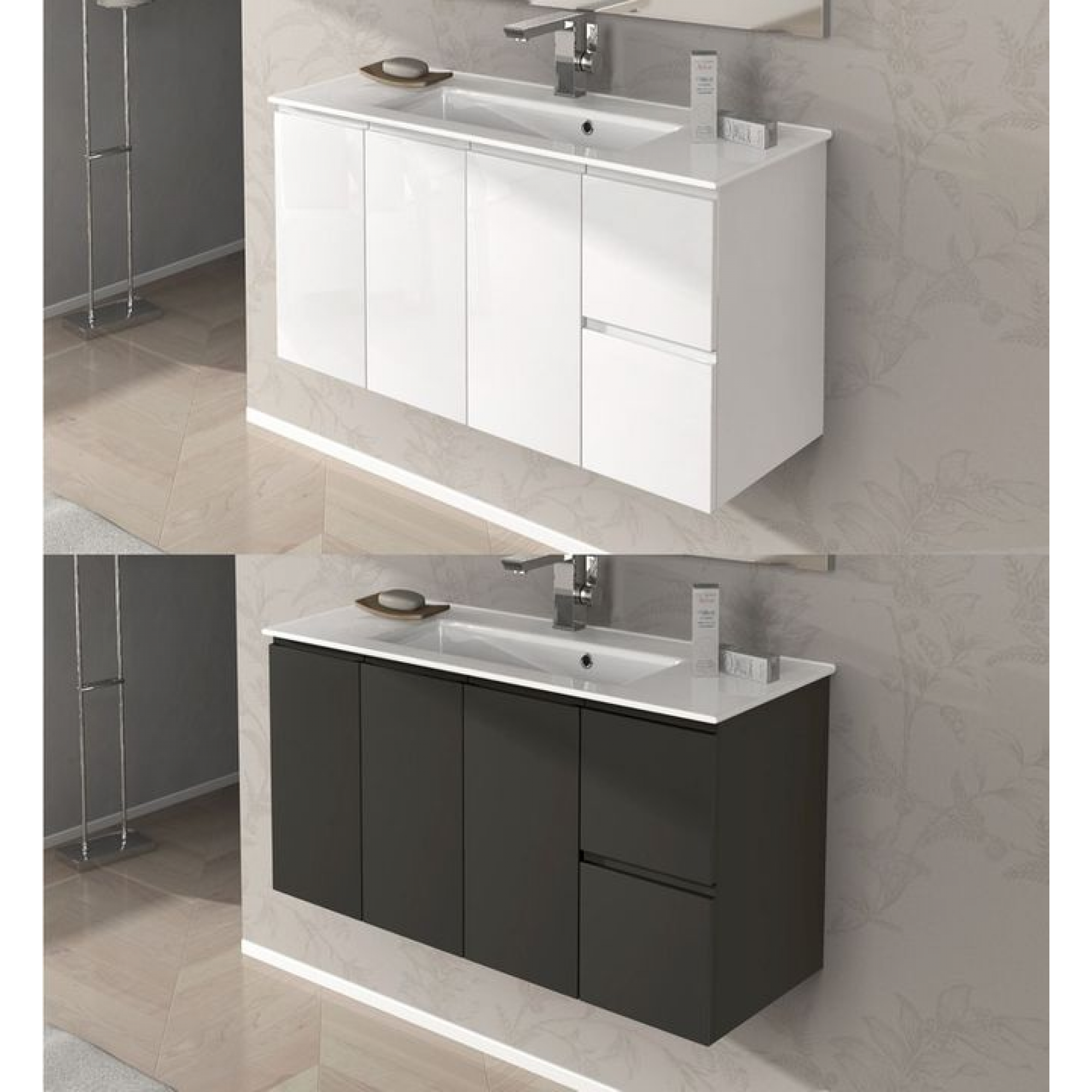 Mobile da Bagno Pensile Design, da 80 o 100cm, Colore Bianco o Nero, Mobile con Ante e Cassetti, Lavabo.