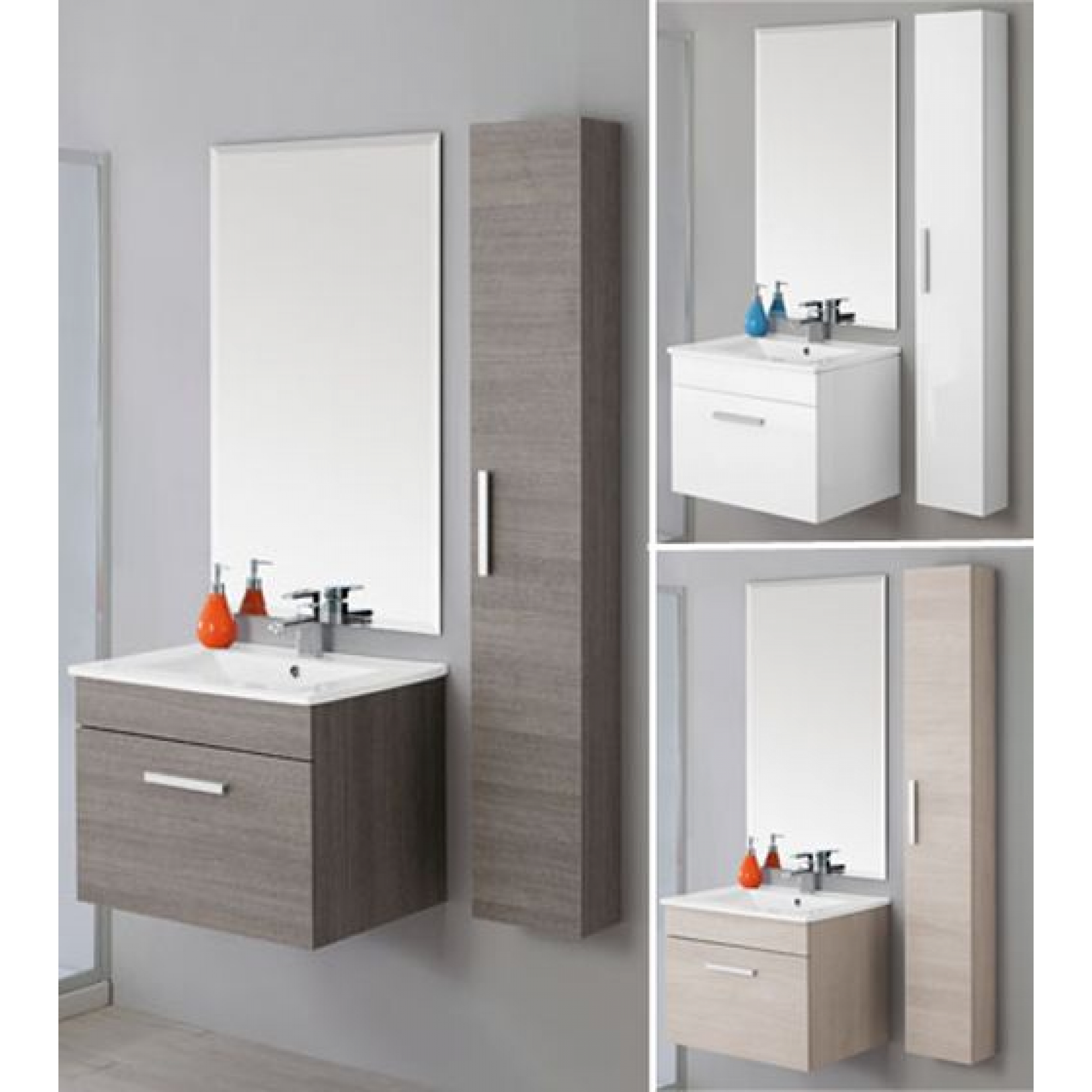 MOBILE BAGNO SOSPESO BIANCO O ROVERE DA 60CM- SPECCHIO- COLONNA