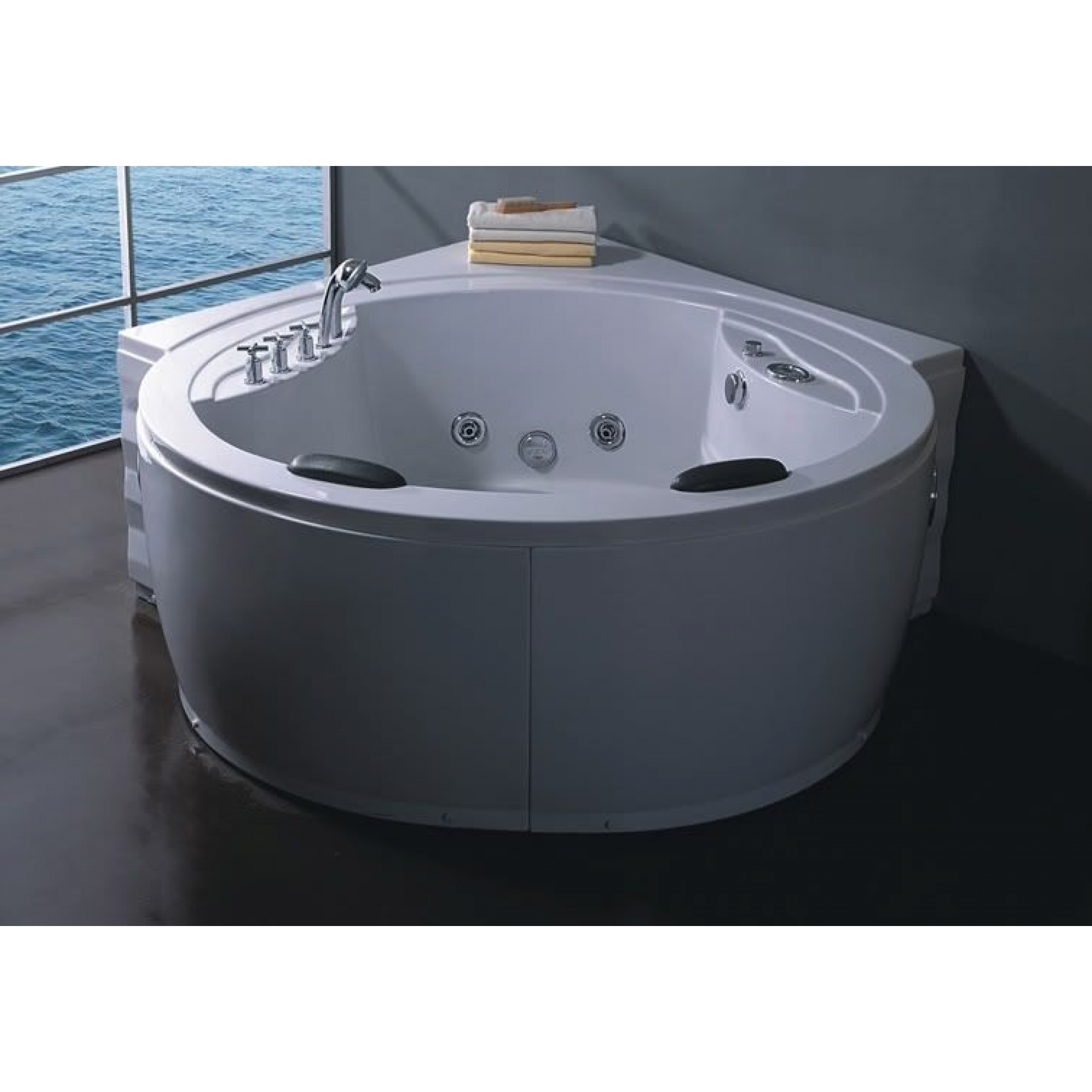 Vasca Idromassaggio, Vasca Doppia, 180x180, 20 Idrogetti, Luci per Cromoterapia e illuminazione Vasca, Ozonoterapia, Rubinetto a Cascata, Cuscini e rubinetteria inclusi. Dettagli Optional riportati in inserzione.