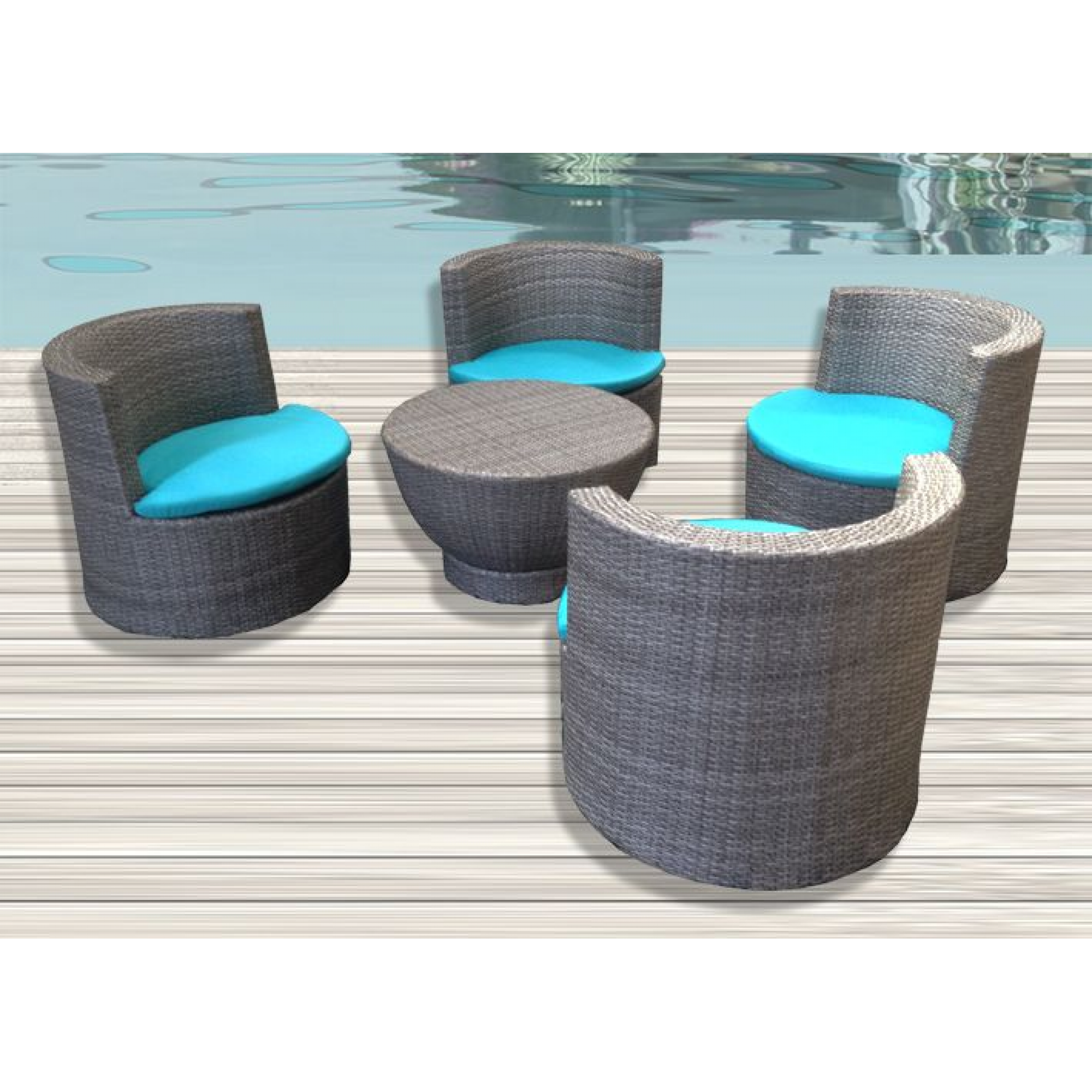 Set Totem in Rattan da esterno, colore Grigio, composto da: tavolino con top in vetro temperato e quattro (4) Poltroncine con Braccioli.