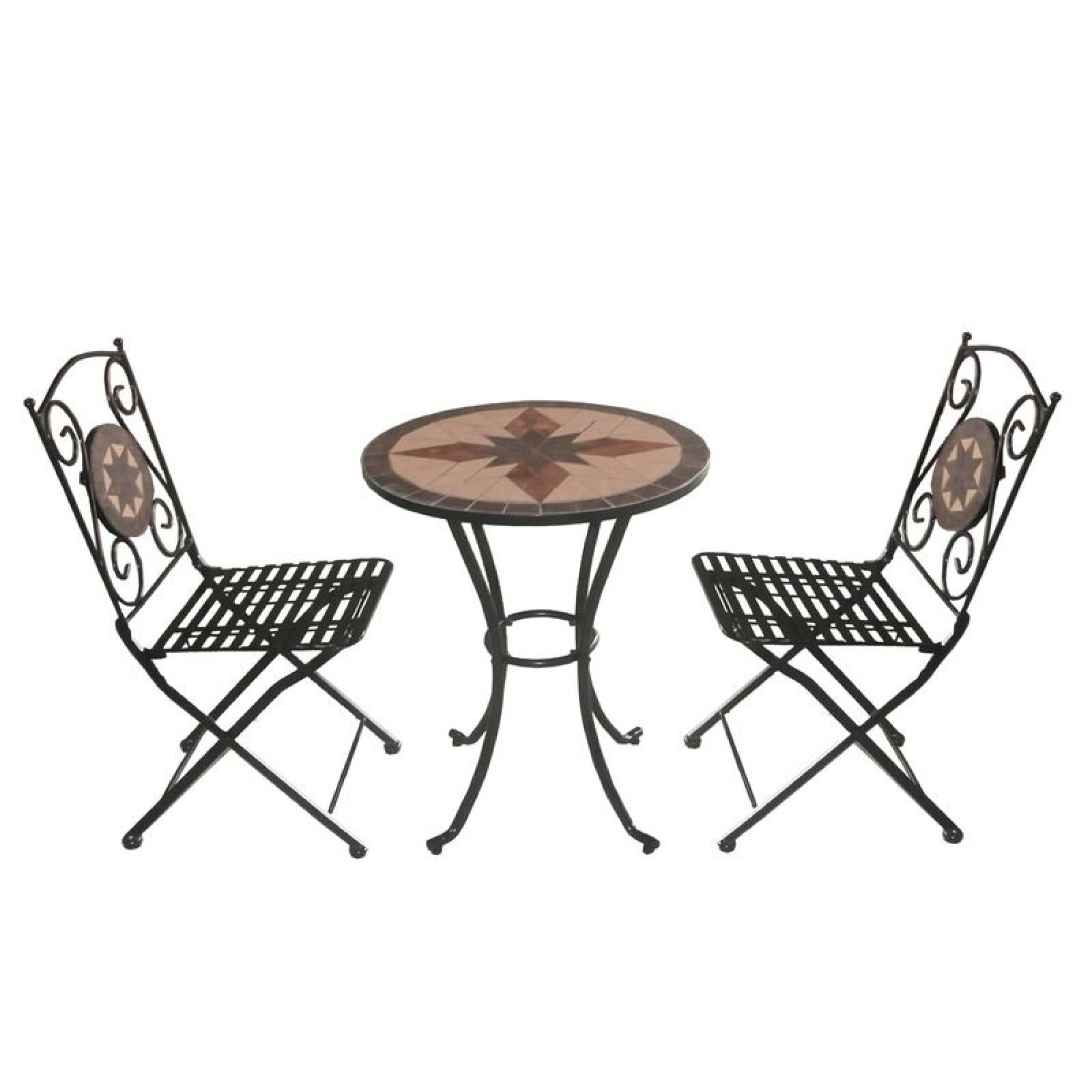 Set Tavolo con Mosaico e Sedie pieghevoli in Ferro di alta qualità . Adatte a spazi esterni o giardino.