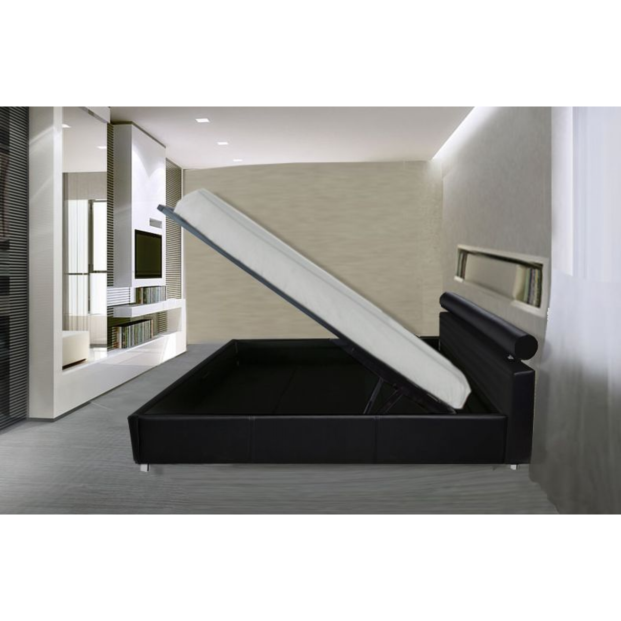 LETTO CONTENITORE MATRIMONIALE IN ECOPELLE MODERNO
