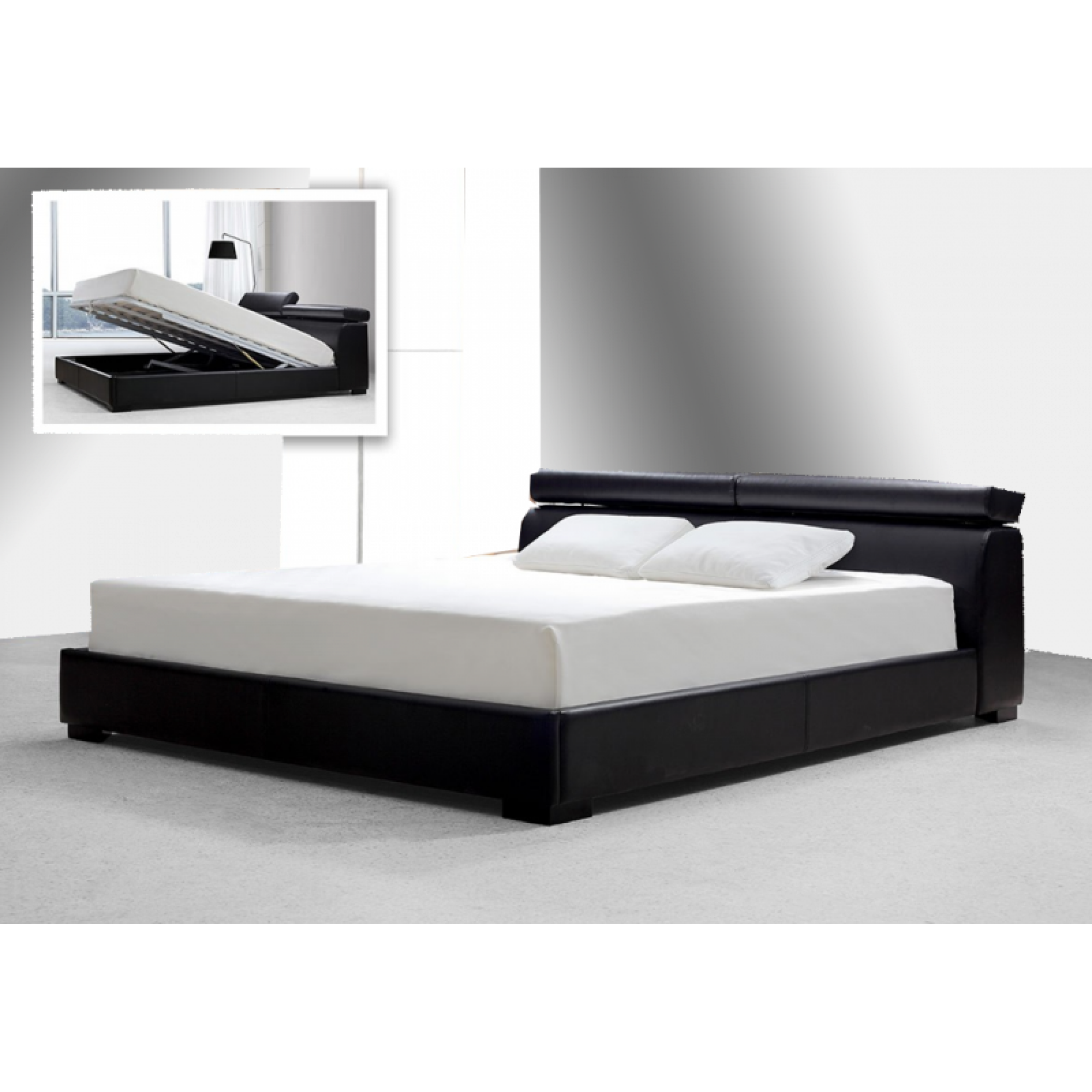 Letto Matrimoniale in Ecopelle Nero con ampio vano Contenitore. Dotato di Rete con Doghe in Legno.