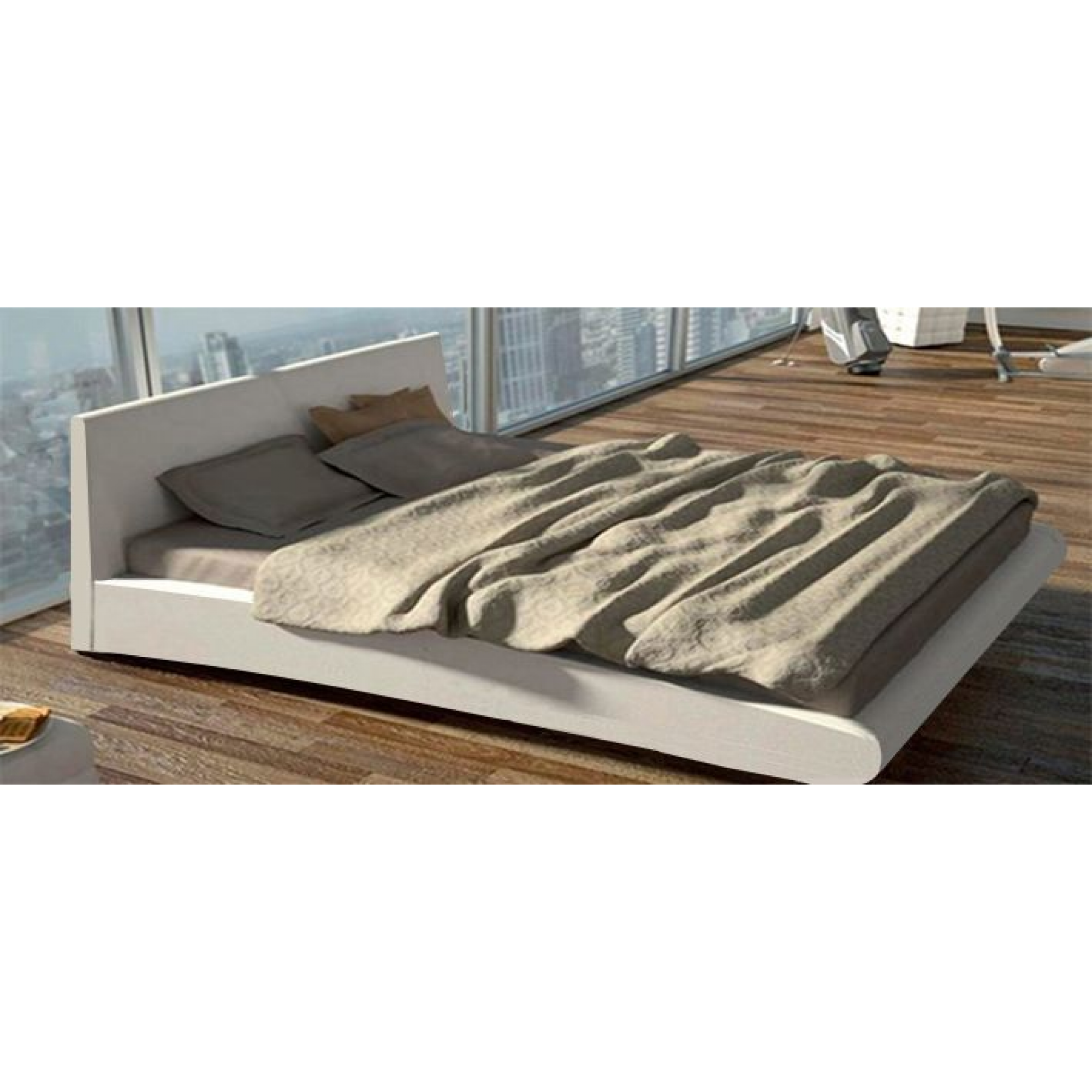 Letto matrimoniale dal design moderno in ecopelle dotato di una solida struttura imbottita.