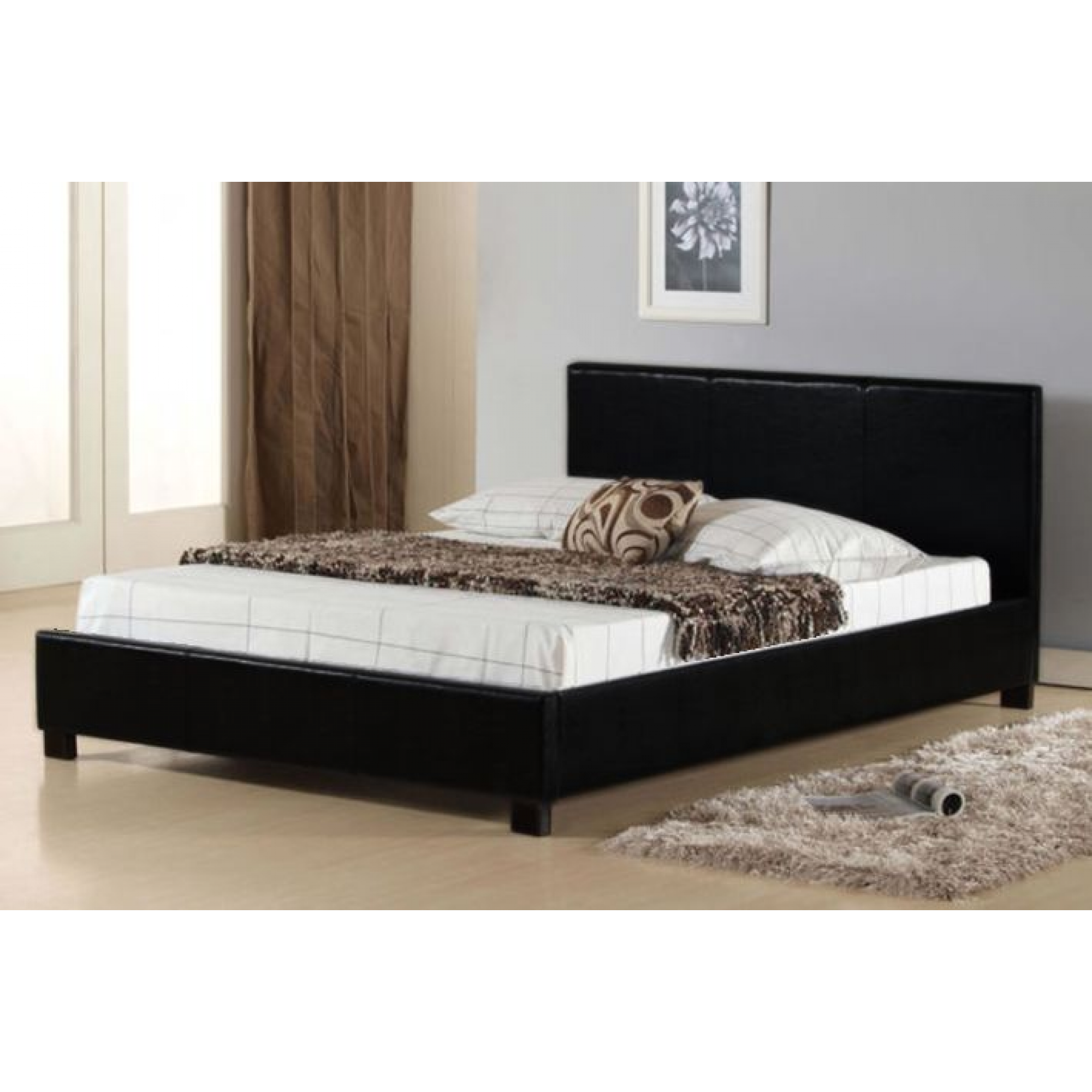 Letto Matrimoniale in Ecopelle Nero. Compreso di Rete con Doghe in Legno.