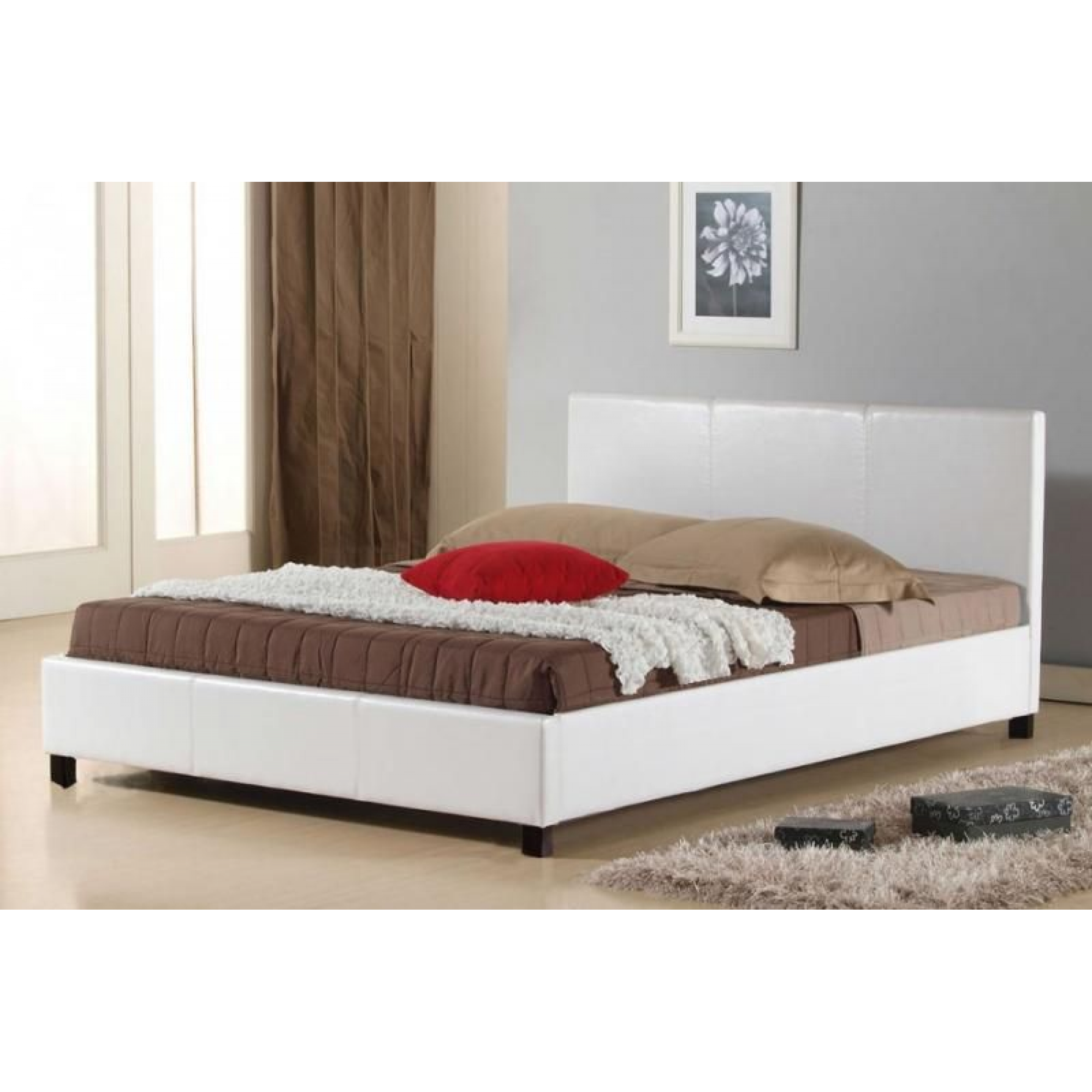 Letto Matrimoniale in Ecopelle Bianco, Design Moderno. Compreso di Rete con Doghe in Legno.