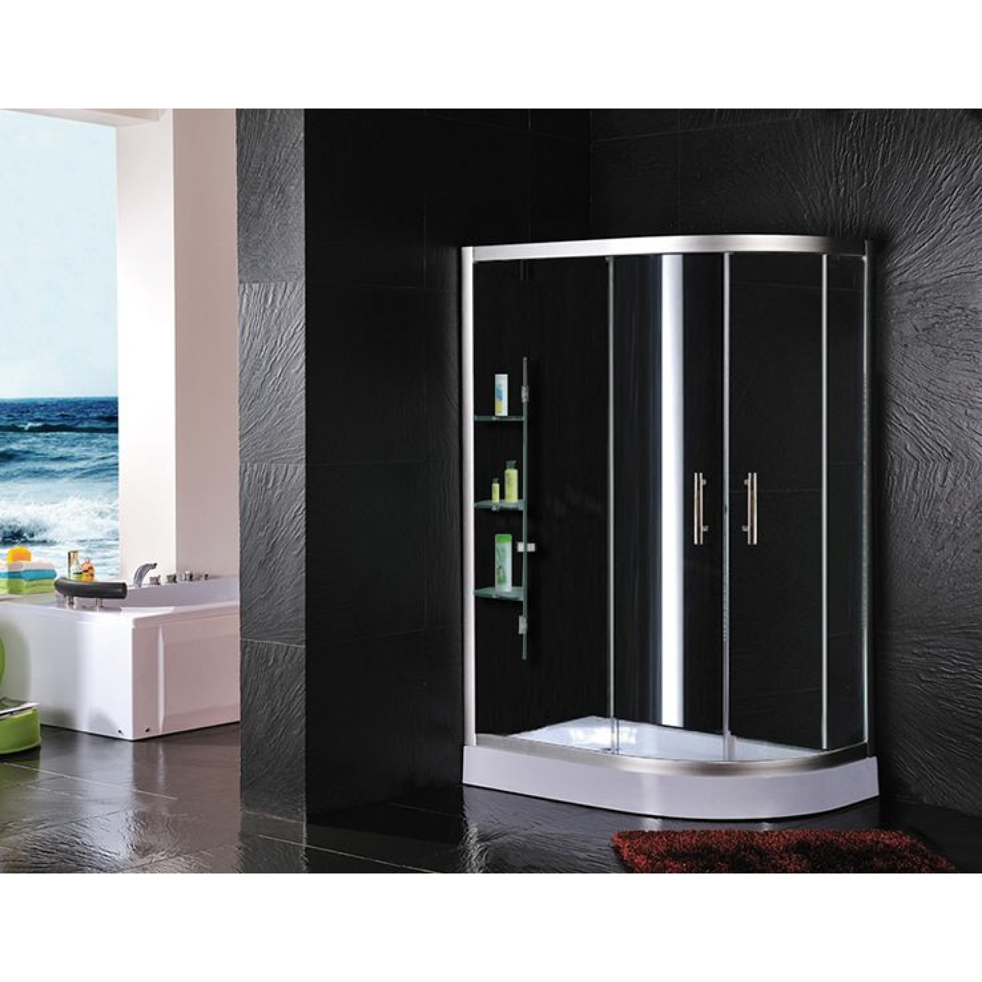 Box Doccia Angolare dal Design Moderno, 120x80x195, in Cristallo temperato da 6mm. Completo di Piatto Doccia.