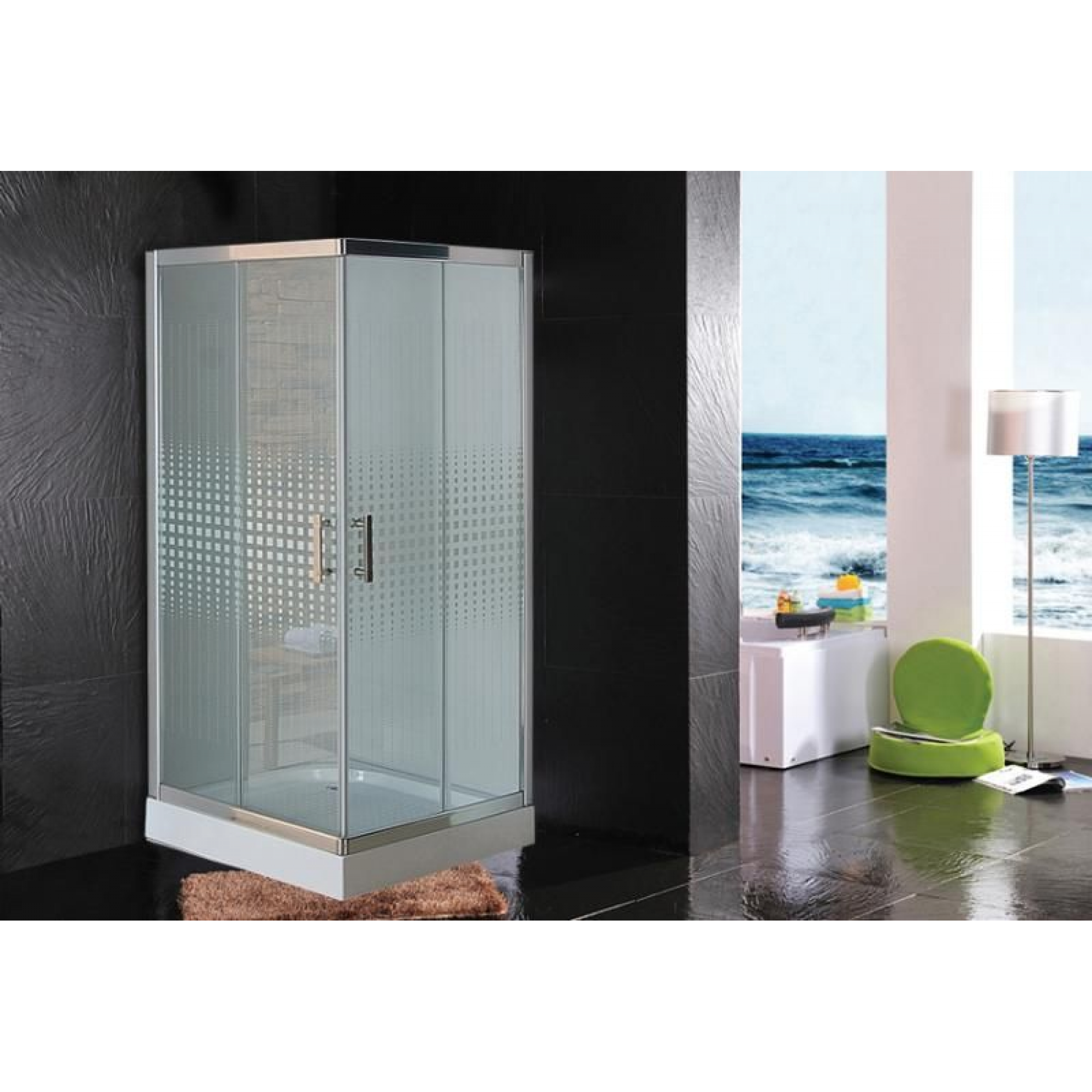 Box Doccia Angolare dal Design Moderno, 80x80x195, in Cristallo temperato Serigrafato da 5mm. Completo di Piatto Doccia.