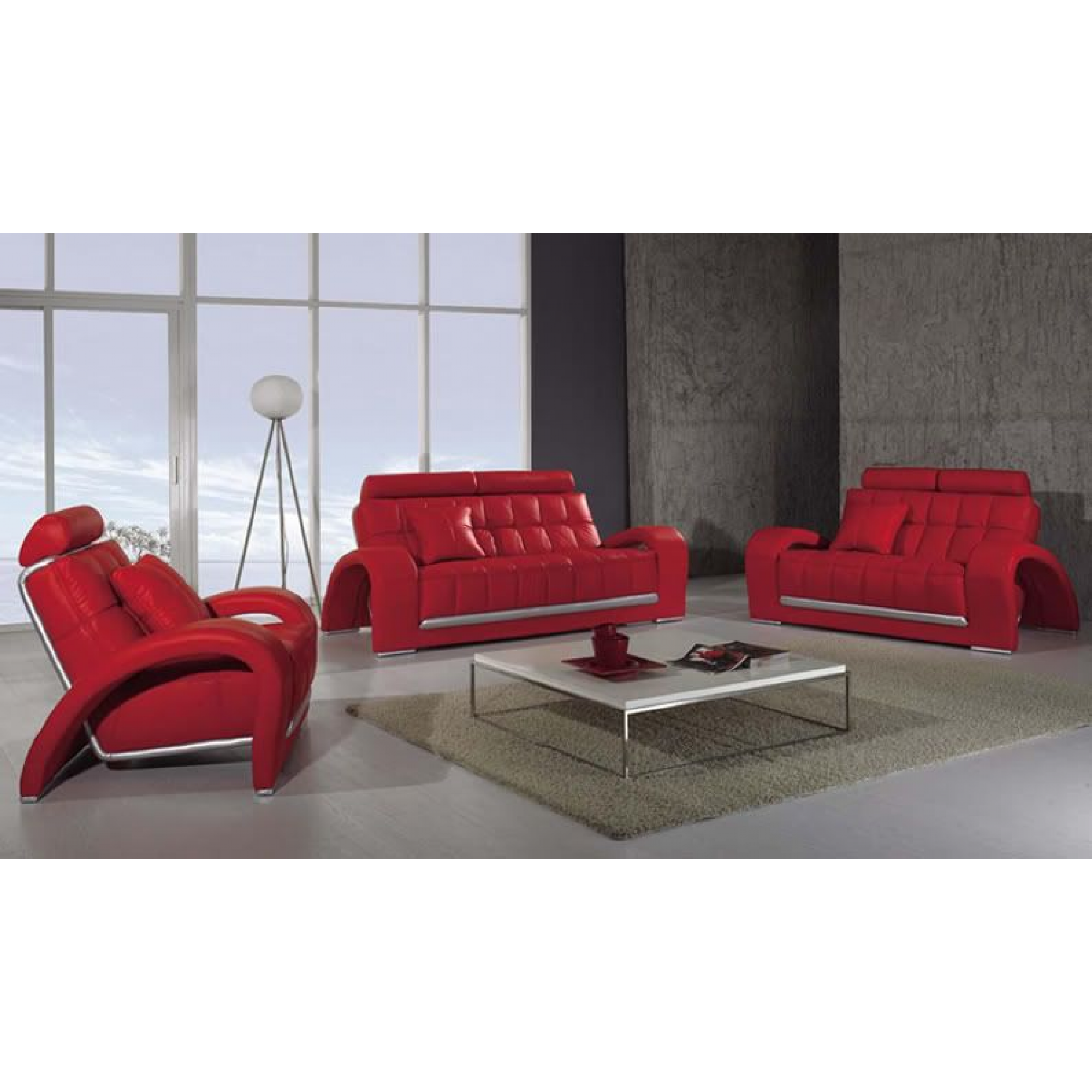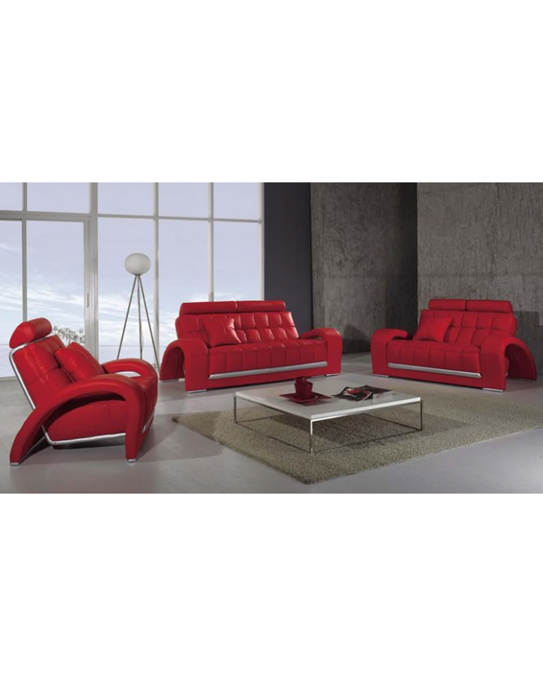 Divano Salotto angolare in Pelle colore Rosso, Poltrona, Seduta due posti e Seduta tre posti.