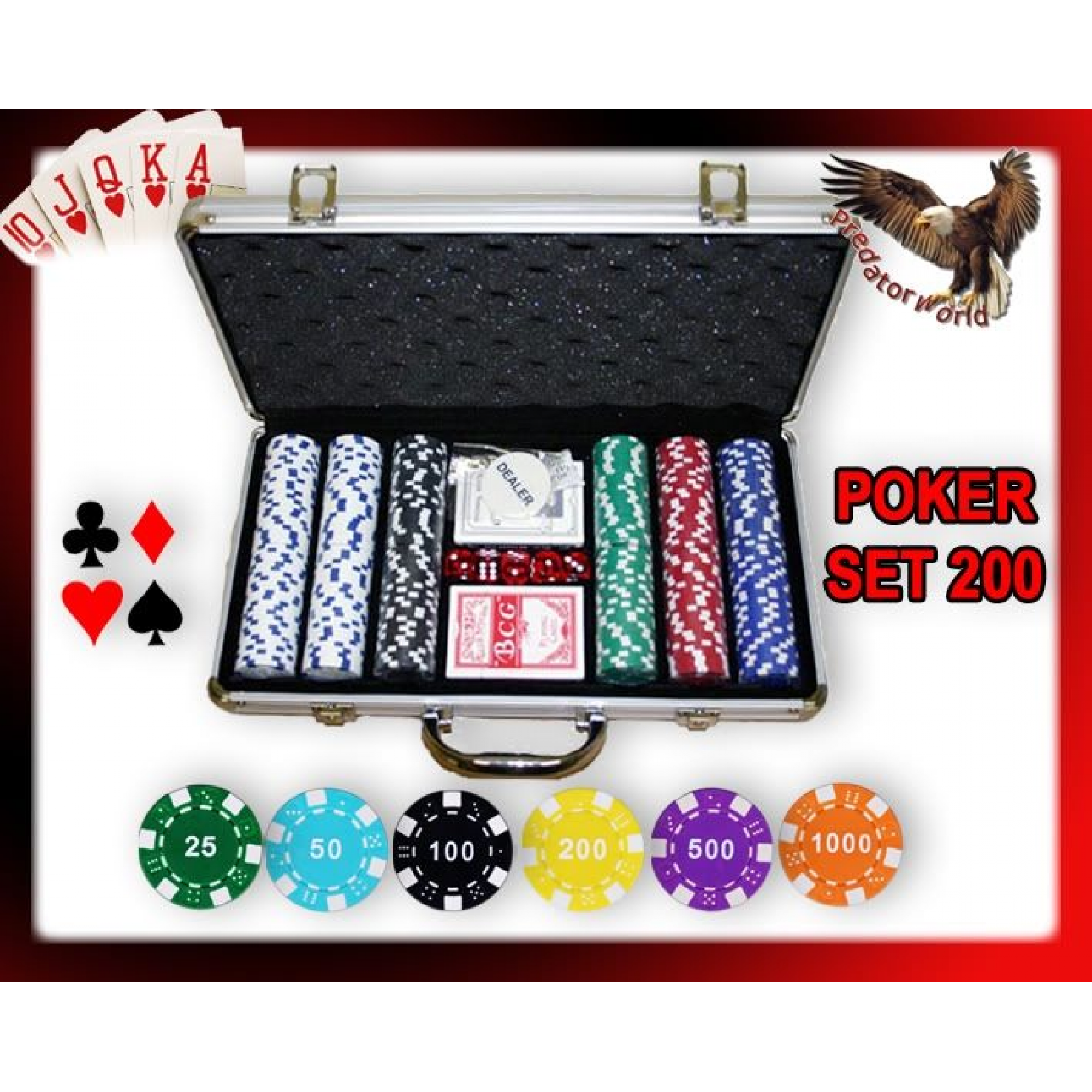 Poker set poker pro 200 fiches modello las vegas con printing del numero e anima in metallo - in clay composit.