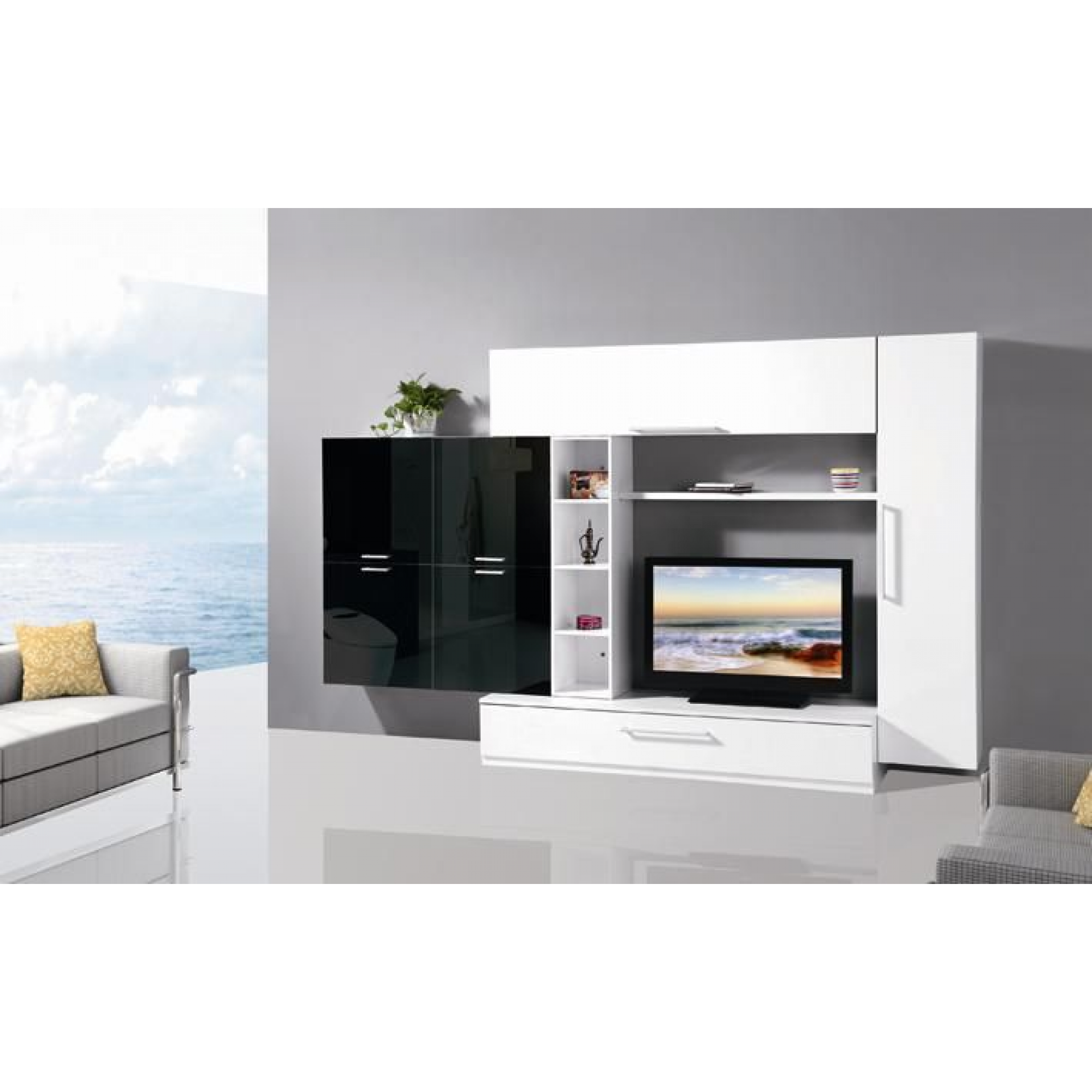 MOBILE SOGGIORNO PARETE ATTREZZATA MDF BIANCO NERO LUCIDO - TV9