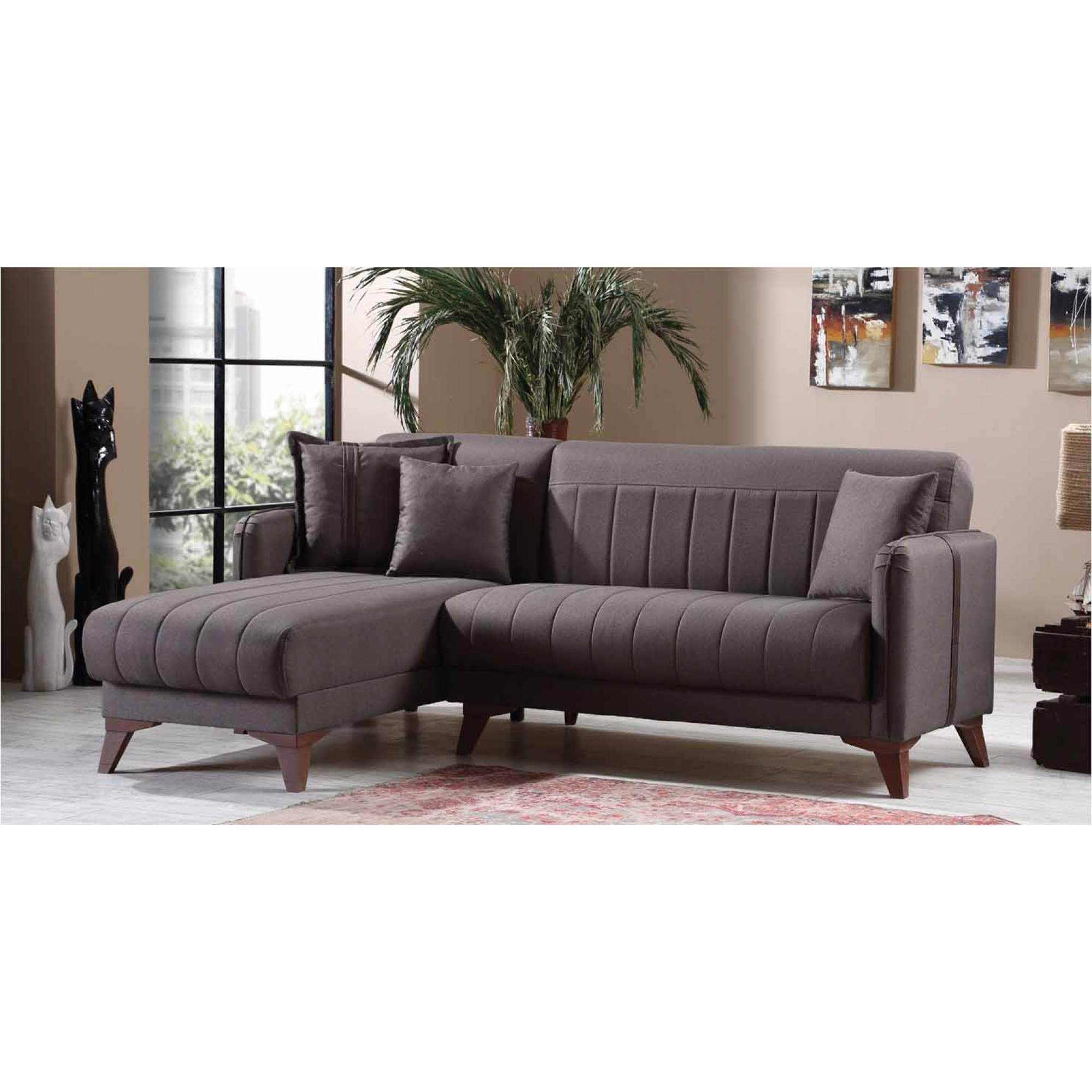 SOFA' - DIVANO LETTO ANGOLARE REVERSIBILE IN MICROFIBRA VELLUTATA COLOR TORTORA MARRONE DAMASCO CHIARO EFFETTO NABUK - VANO CONTENITORE IN MDF NOBILITATO NELLA CHAISE LONGUE - STILE MODERNO - CON BRACCIOLI, COMPRENSIVI DI CUSCINI!