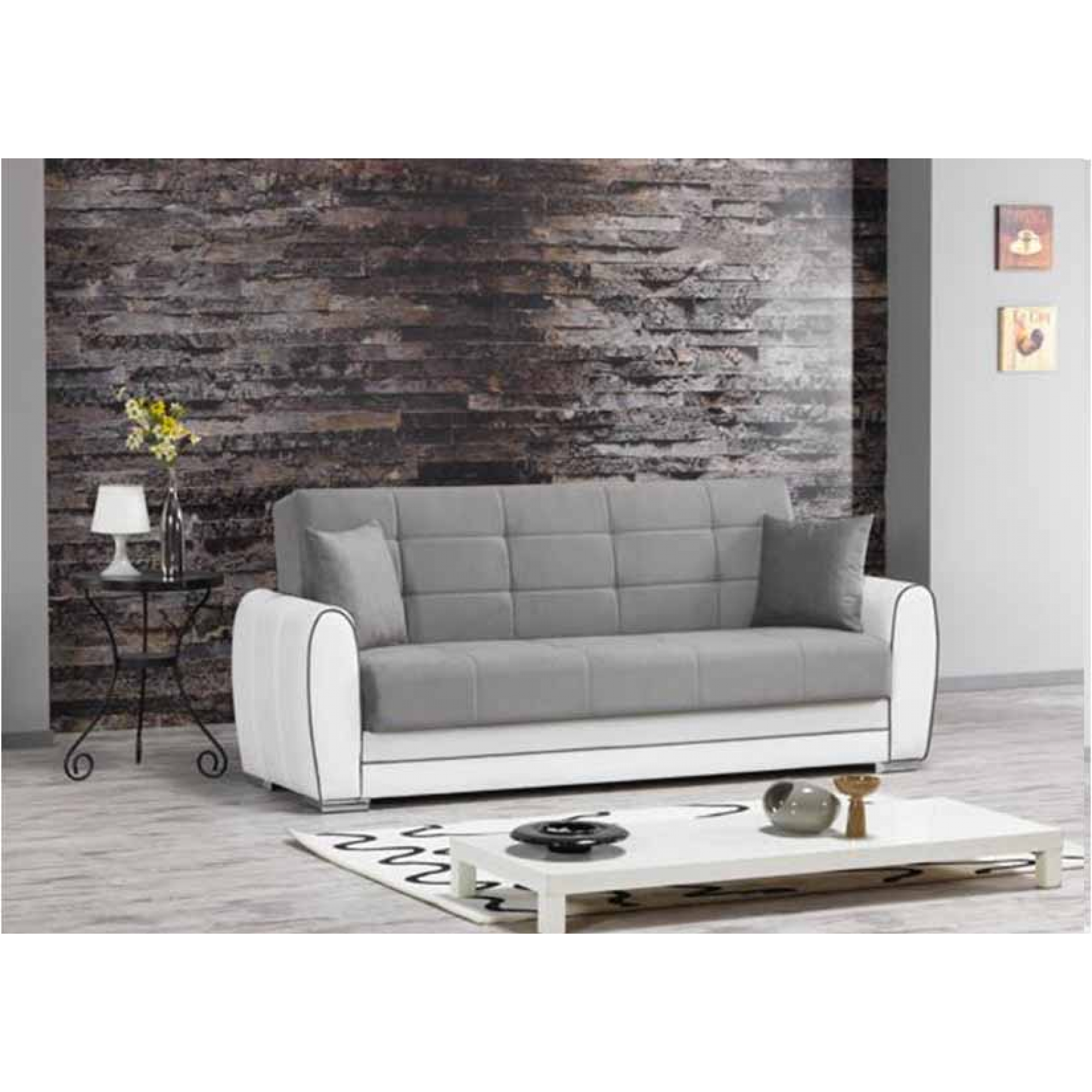 DIVANO LETTO ECOPELLE / MICROFIBRA COLORE BIANCO / GRIGIO - CON VANO CONTENITORE - NUOVO STILE DESIGN UNICO - MODELLO QUALITA' SUPERIORE. UNICI A VENDERLO IN ITALIA AD UN PREZZO COSI' VANTAGGIOSO. VALORE NEI NEGOZI CHE VA OLTRE EURO 680,00. STRUTTURA SOLIDA E PIEDINI RINFORZATI PER UNA MAGGIORE STABILITA E ROBUSTEZZA, QUALITA' ECOPELLE MARTELLATA SUPERIORE, LA MICROFIBRA INVECE DARA' UN EFFETTO AL TATTO DI COMFORT SENZA EGUALI. CUSCINI ABBINATI INCLUSI. MODELLO TOP GAMMA!