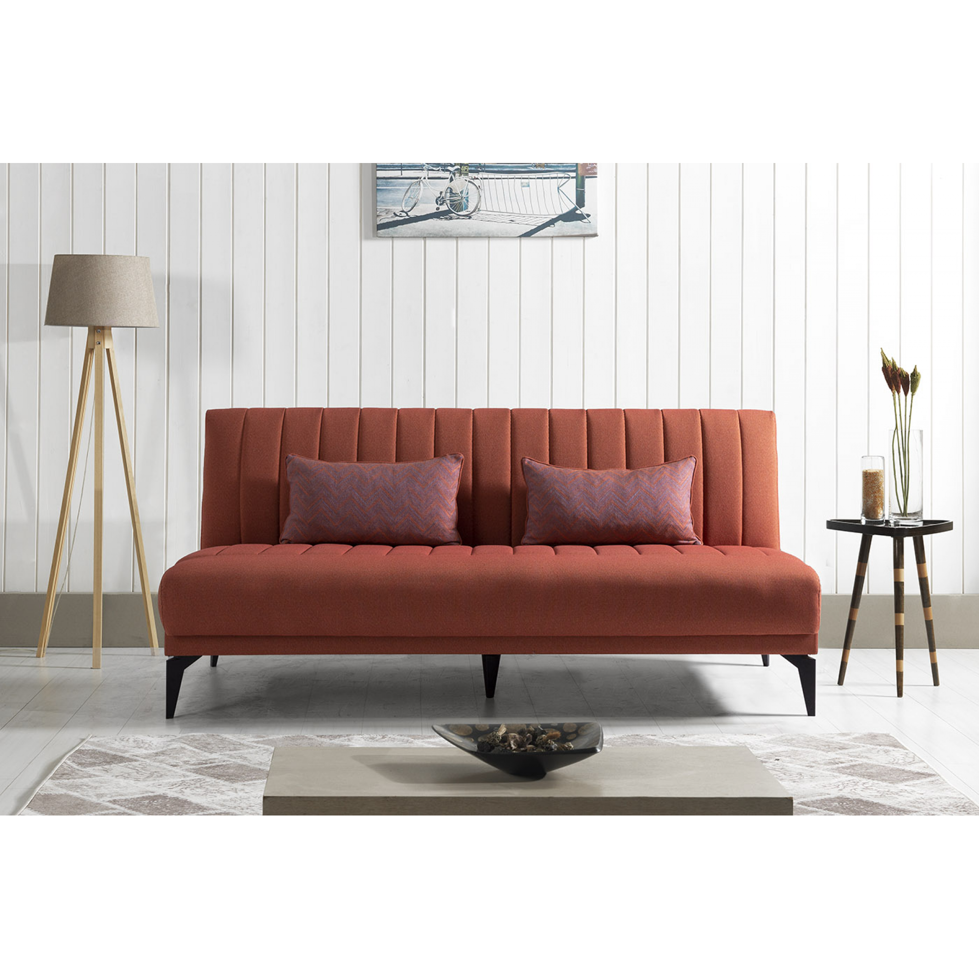 DIVANO LETTO MICROFIBRA ROSSO MATTONE CHIARO PRAD - RECLINABILE CUSCINI DOPPIO - VINTAGE / MODERNO - LUX -IT