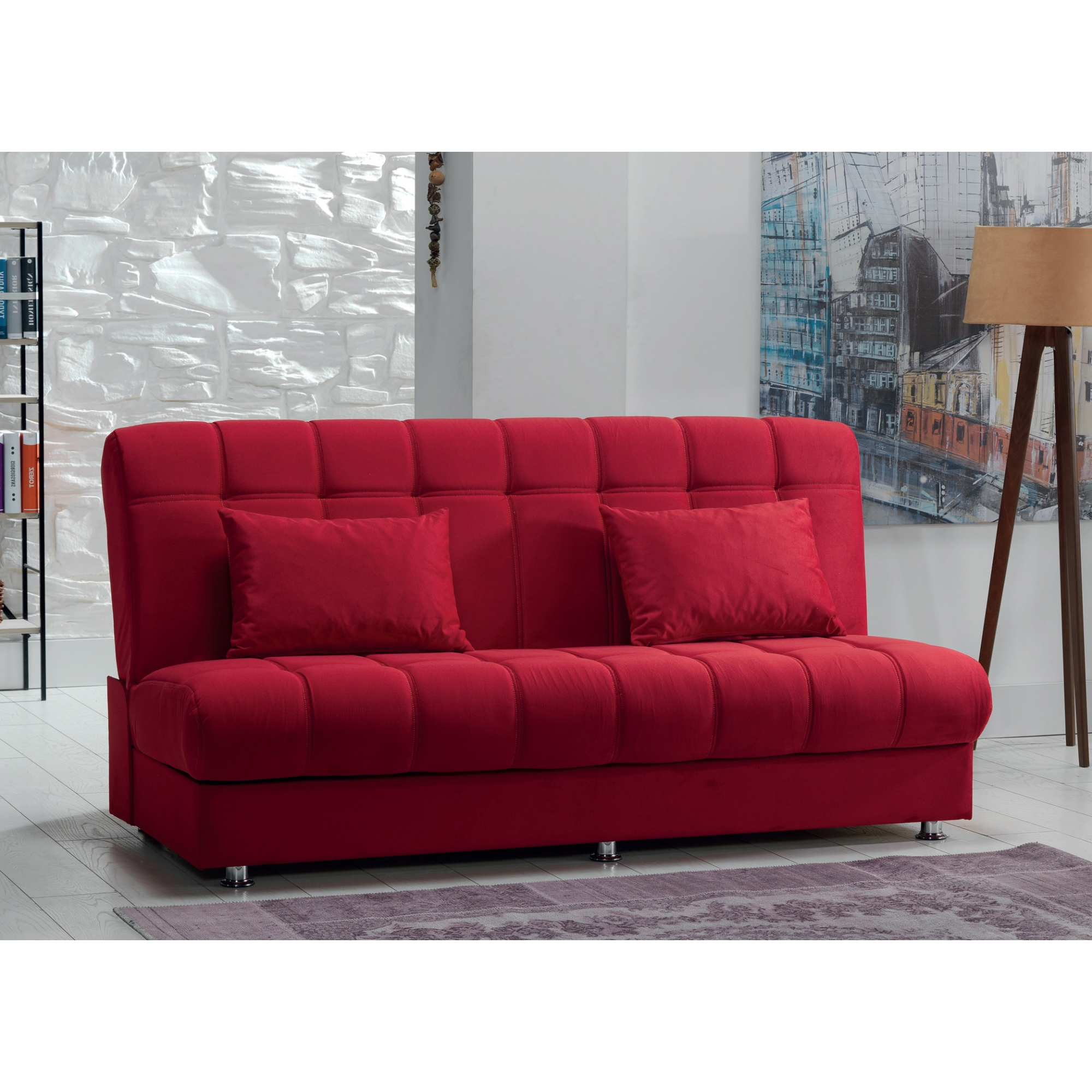 DIVANO LETTO MATRIMONIALE CONTENITORE MICROFIBRA ROSSO - RECLINABILE CON CUSCINI DOPPIO - MODERNO -IT