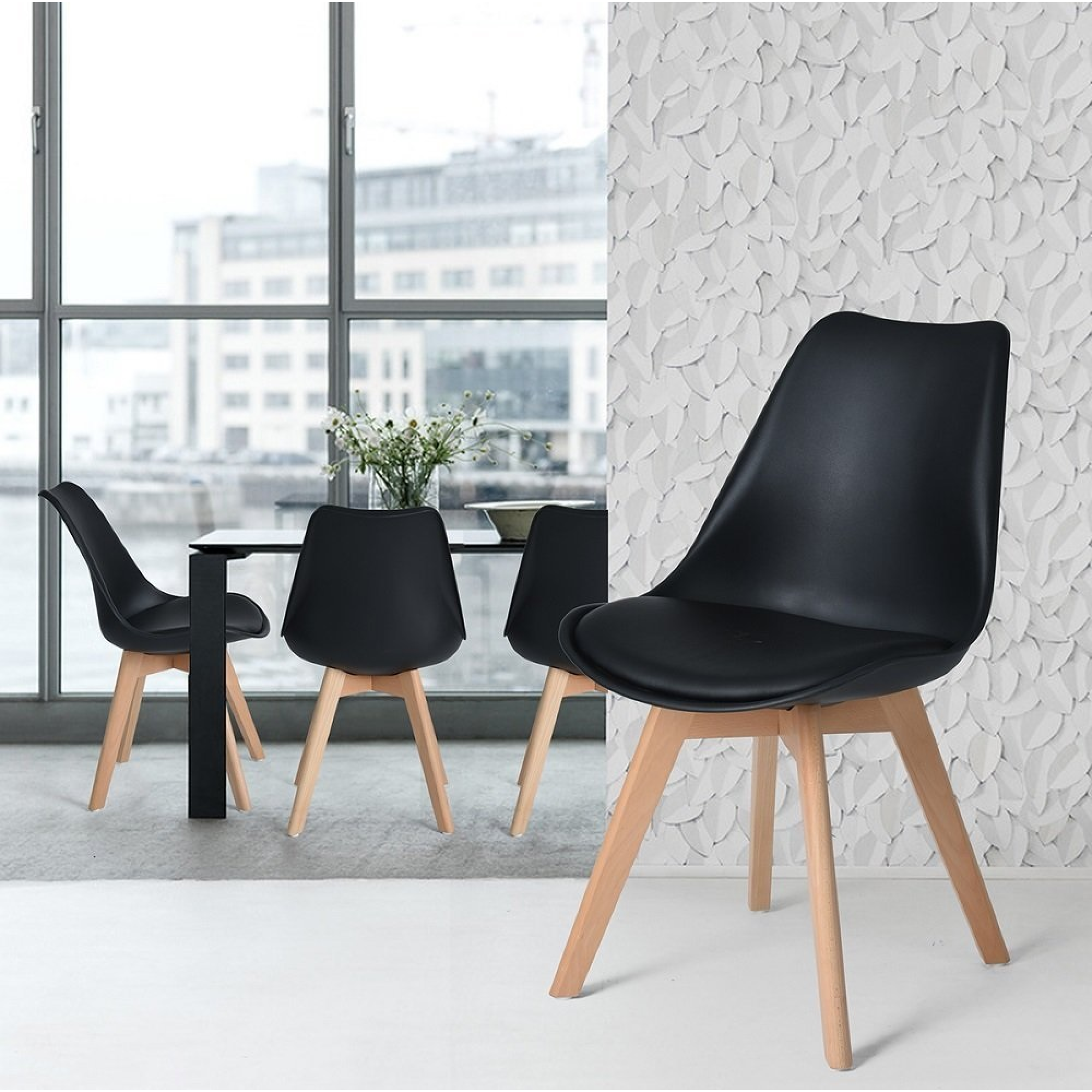 QUESTA OFFERTA COMPRENDE 1 SEDIA CON CUSCINO IN ECOPELLE SPESSORATO (IL CUSCINO PUO' ESSERE STACCATO DALLA SEDUTA). MATERIALE SEDIA IN POLIPRPILENE NERO. SEDIA NERA MODELLO "PALAU" CON GAMBE IN FAGGIO.