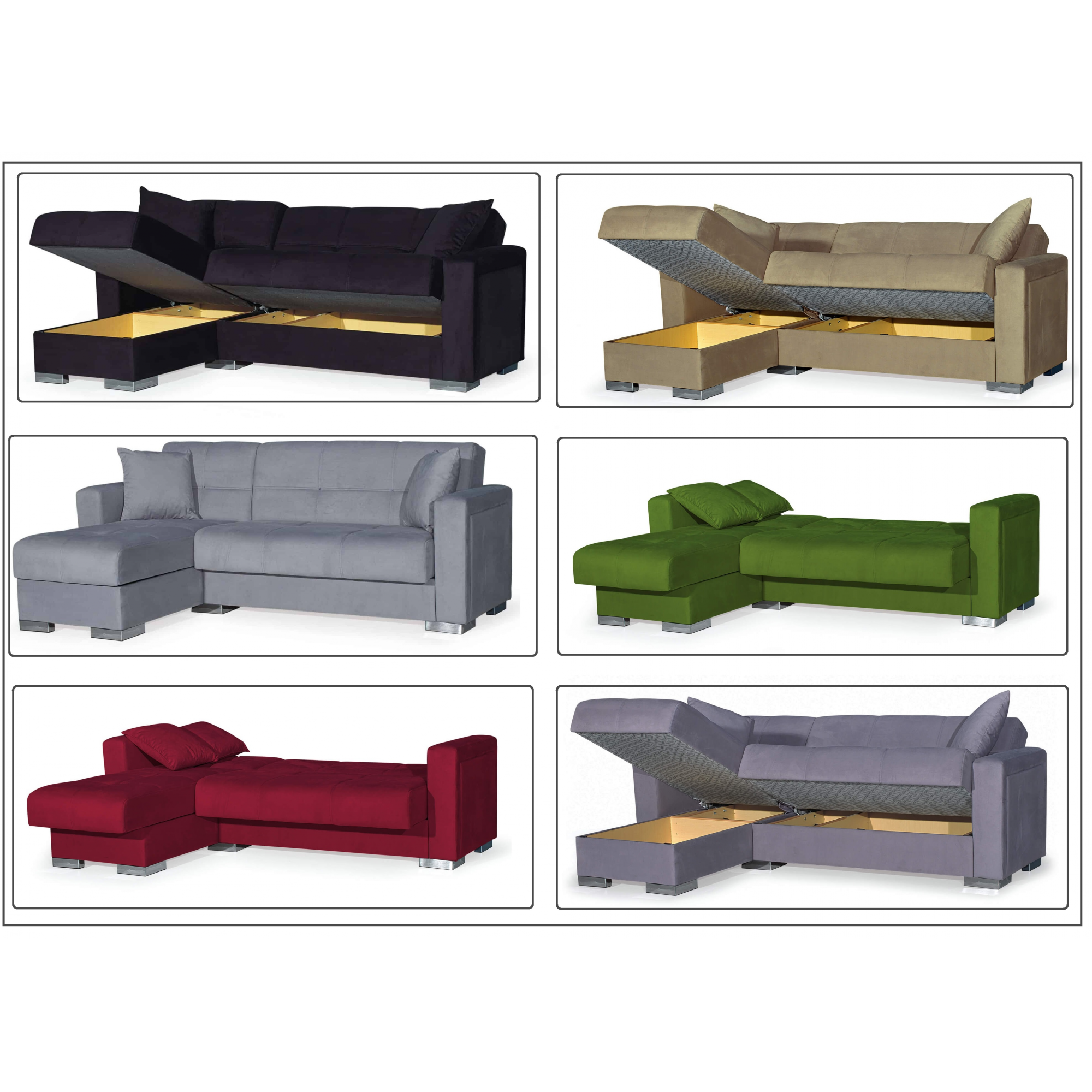 DIVANO LETTO ANGOLARE CONTENITORE REVERSIBILE IN VELLUTO GRIGIO SCURO / NERO / GRIGIO CHIARO / ROSSO / VERDE OLIVA / BEIGE - ITA