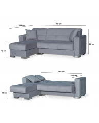 DIVANO LETTO ANGOLARE IN VELLUTO GRIGIO SCURO / NERO / GRIGIO CHIARO / ROSSO / VERDE OLIVA / BEIGE, QUALITA' ELEVATISSIMA, REVERSIBILE CON AMPIO VANO CONTENITORE POSTO SOTTO LA CHAISE LONGUE, COMPLETAMENTE USUFRUIBILE PER TUTTO IL SUO SPAZIO, 2 CUSCINI ABBINATI, CHE NE CONFERISCONO UN TOCCO DI ELEGANZA SOBRIO ED UN INCONFONDIBILE STILE DAL DESIGN MODERNO ED ACCATTIVANTE.