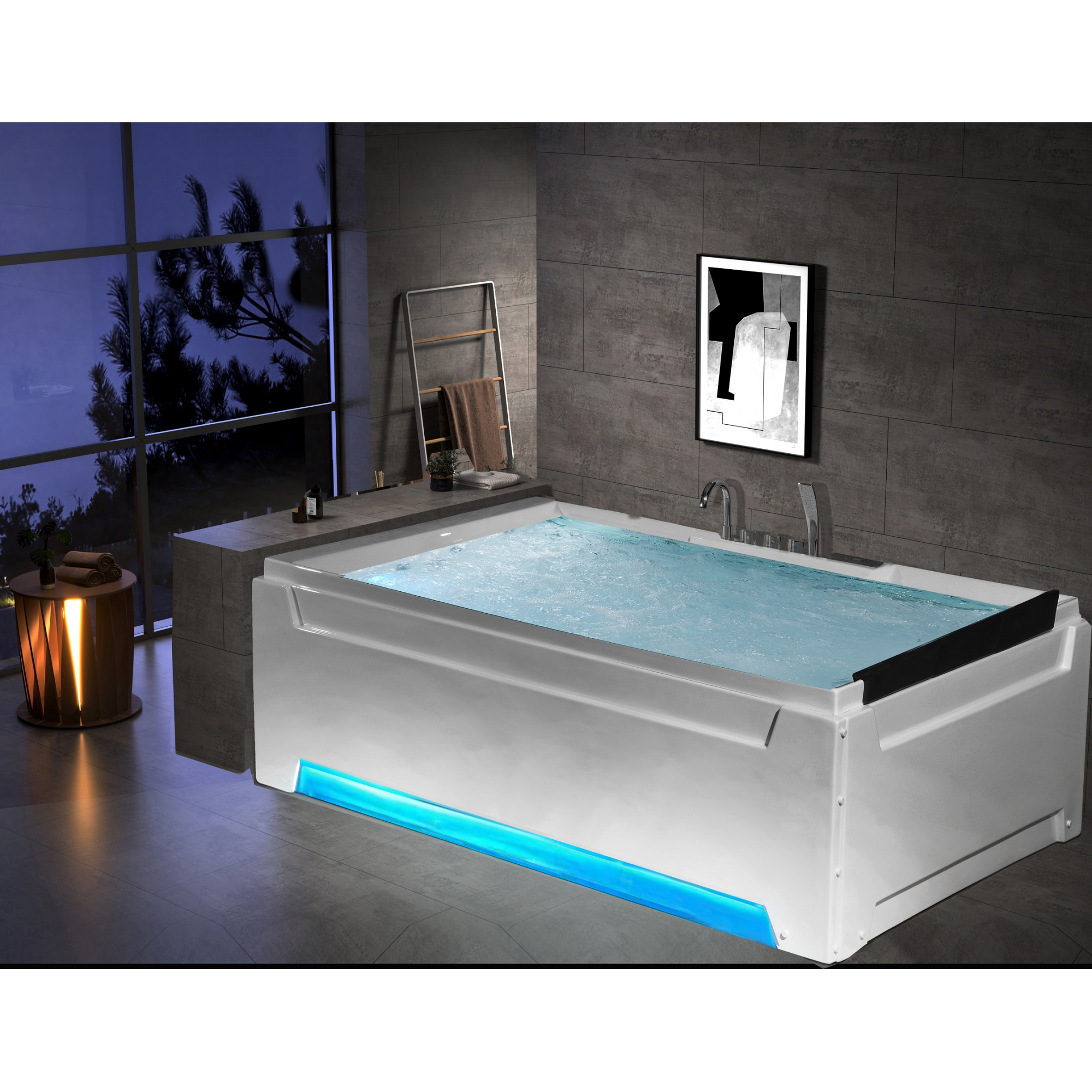 Vasca Idromassaggio, Vasca Doppia, 185x125, CON 24 Idrogetti, Luci per Cromoterapia e illuminazione vasca, Rubinetto a Cascata, Cuscini e rubinetteria inclusi. Dettagli Optional riportati in inserzione. Ozono + Doppia Pompa + Doppio Altoparlante + Triplo Cuscino + Striscia Led + Riscaldatore + Bluetooth