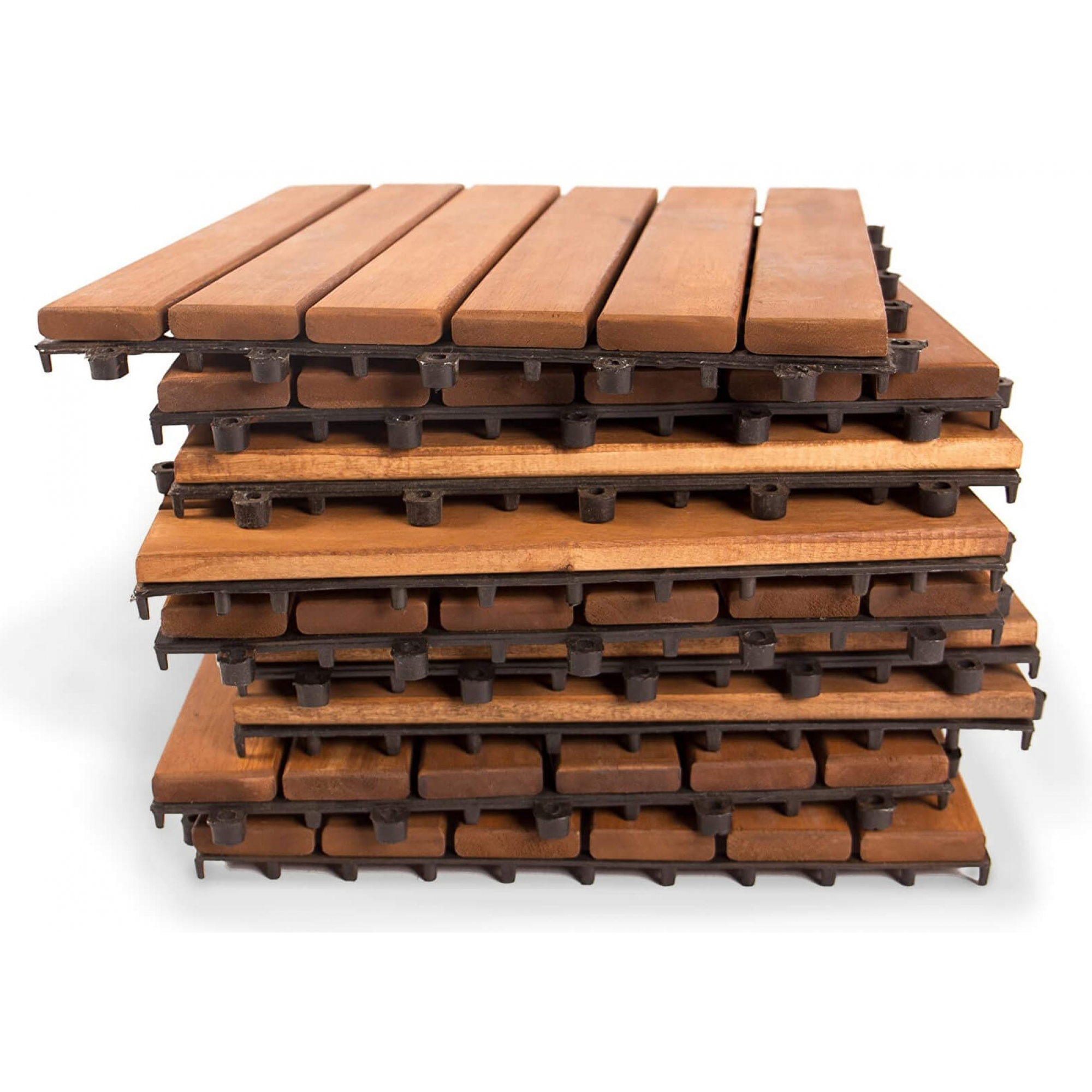 MATTONELLA PIASTRELLA IN LEGNO ACACIA 30X30 CM - 1 m² - 11 PEZZI - AD INCASTRO TOP QUALITA' CON RINFORZO ALLA BASE