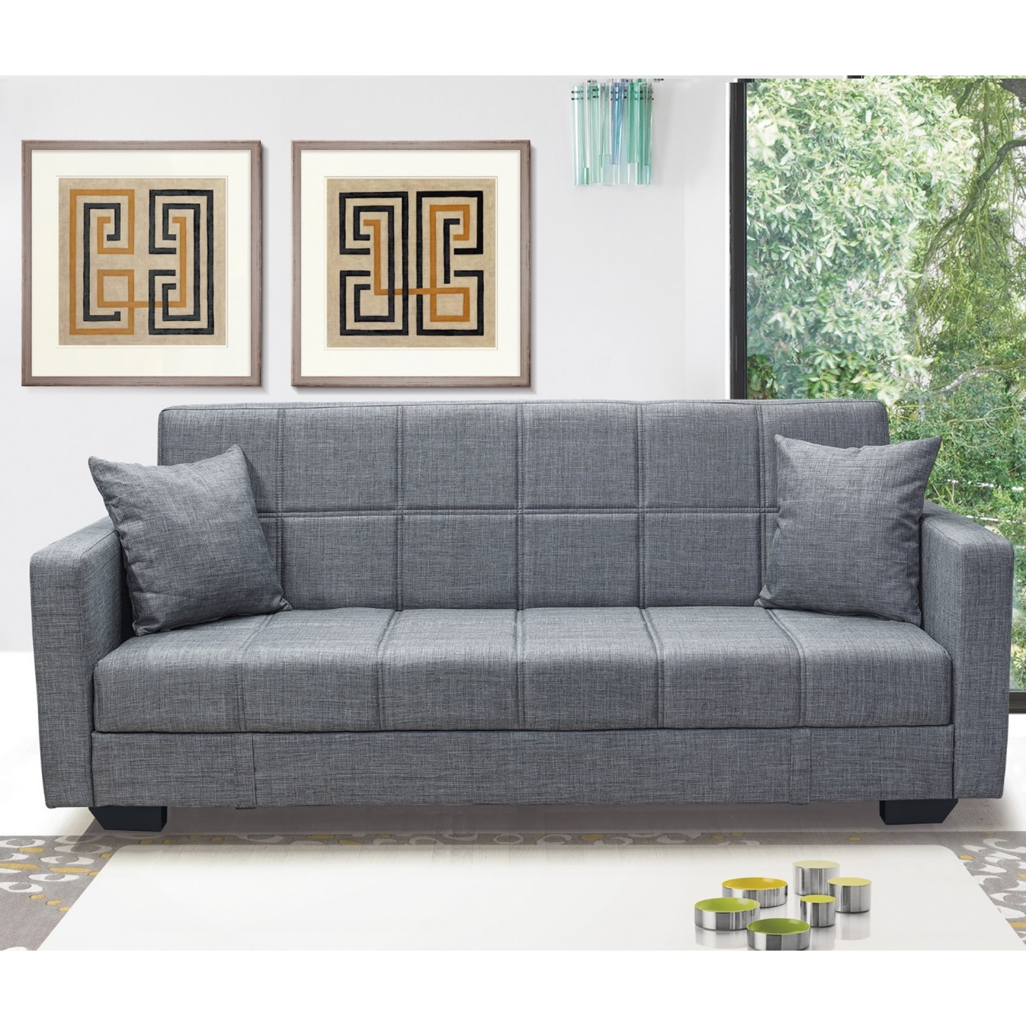 Divano Letto Reclinabile Contenitore. in Lino di Alta qualità , colore Grigio, tre posti a sedere, Letto aperto da una piazza e 1/2 con sistema antiribaltamento, comprensivo di Cuscini in Microfibra. Con vano contenitore