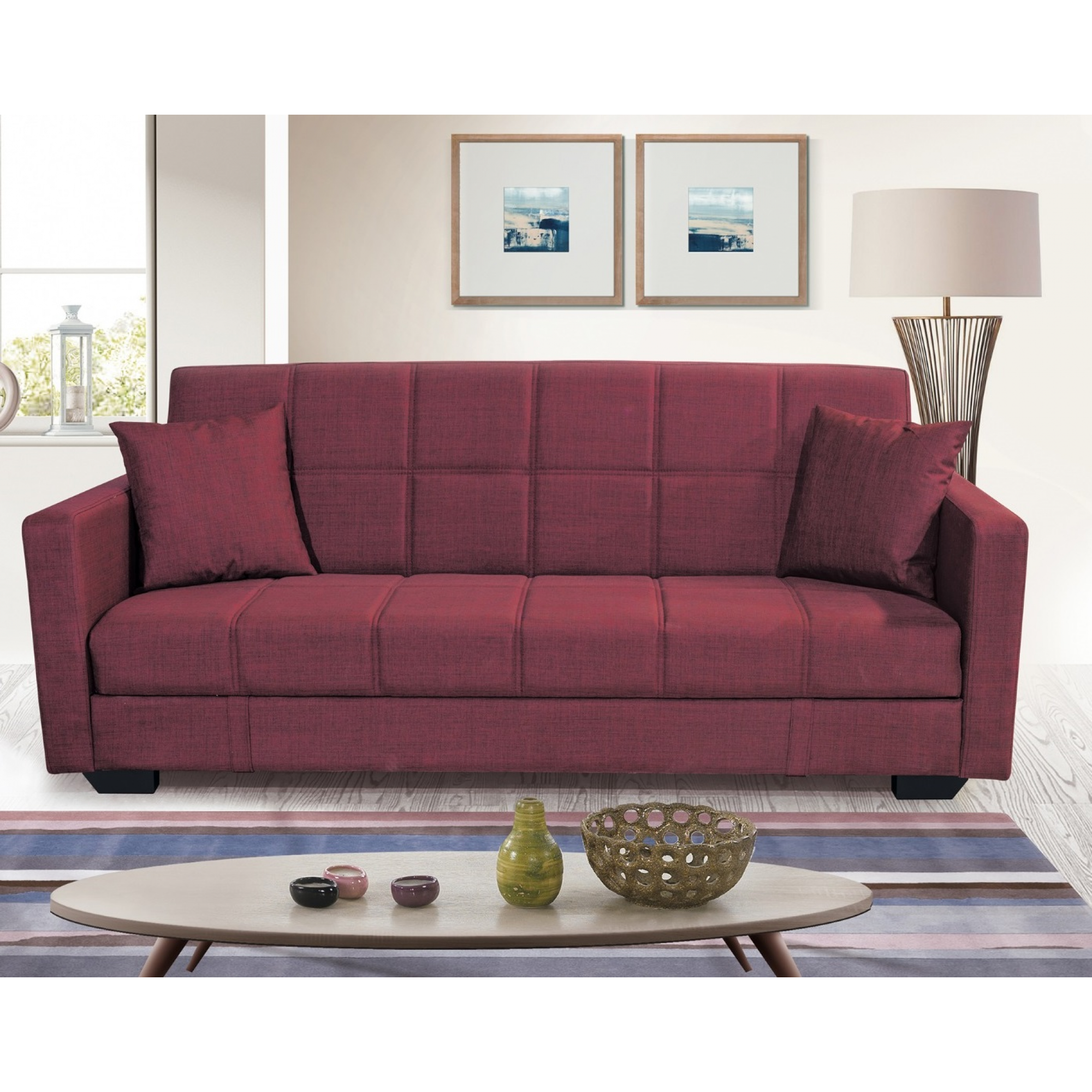 DIVANO CONTENITORE A LETTO BORDEAUX - ROSSO IN LINO - RECLINABILE - 3 POSTI - ITA LUX