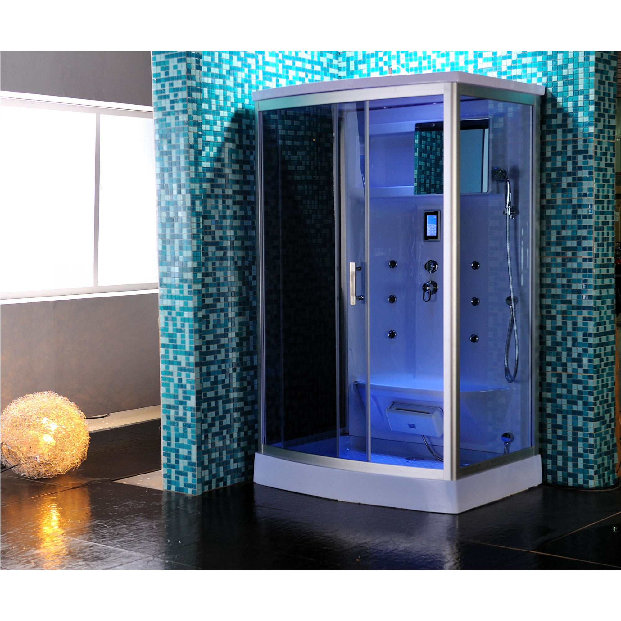 Il pannello di controllo digitale touchscreen, la chiusura delle porte magnetica, le rifiniture in alluminio satinato, il vetro temperato trasparente da 6,5 mm anti infortunio, il doccione superiore illuminato, il massaggio plantare, la sauna, l’apparecchiatura telefonica in vivavoce, la radio FM e il Bluetooth sono alcune delle spettacolari funzionalità che contraddistinguono questa cabina.