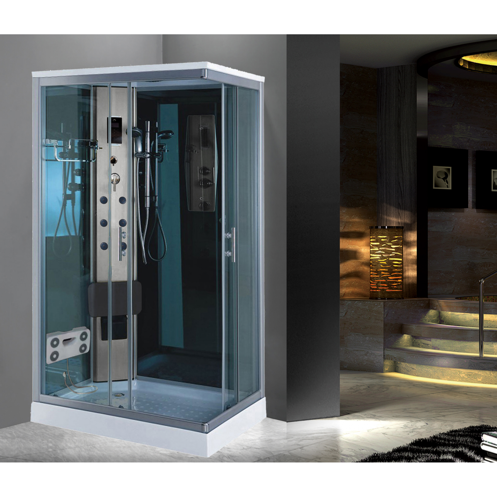 Il pannello di controllo digitale touchscreen, la chiusura delle porte magnetica, le rifiniture in alluminio satinato, il vetro temperato ed oscurato da 6,5 mm anti infortunio, il doccione superiore illuminato, la cromoterapia a 7 colori, l'ozonoterapia, il massaggio plantare, l’apparecchiatura telefonica in vivavoce, collegamento Bluetooth la radio FM e la predisposizione per i compact disc sono alcune delle spettacolari funzionalità che contraddistinguono questa cabina. La Cabina è comprensiva di tutti gli accessori descritti, solo il seggiolino si può acquistare ed installare separamente al prezzo di 39,00. Se serve contattarci, grazie