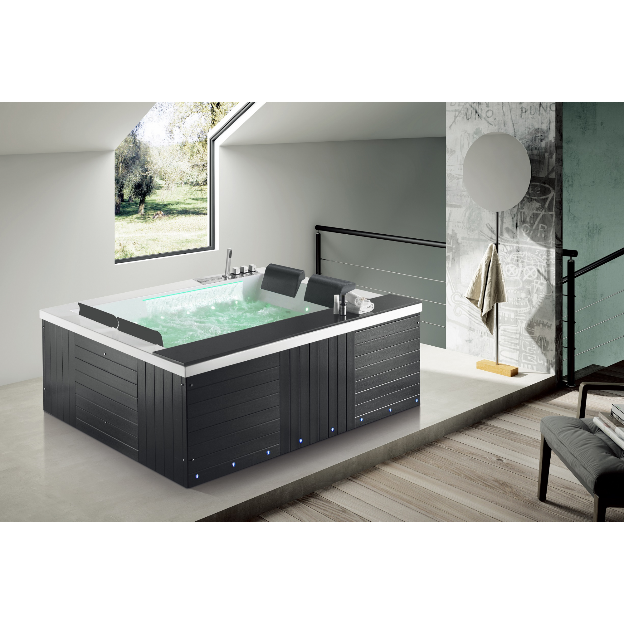 Vasca Idromassaggio Lux Design 4 POSTI, 190x150, 50 Idrogetti, Luci per Cromoterapia, Full Pc Touch.. Manopole acciaio. Led. Ozonoterapia e Doppia Cascata Niagara. Dotata di Doppia Pompa. Riscaldamento elettronico dell'acqua. Pc Full Touch con Bluetooth. Doppia Cascata Intagliata, Micro Led Perimetrali e pannello a 4 lati. Full Optional