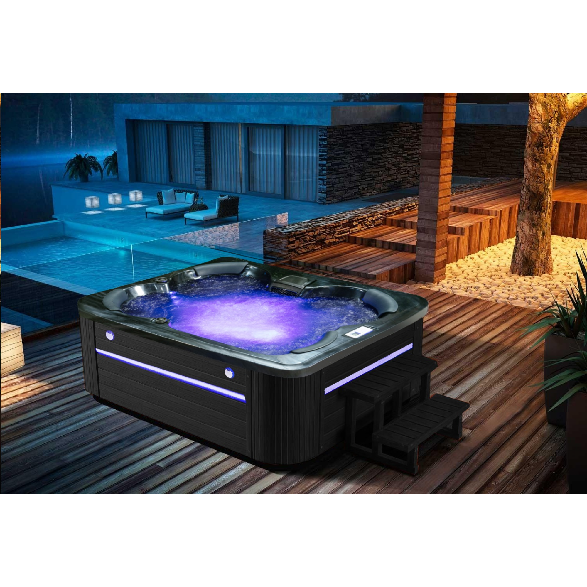 Splendida Vasca Idromassaggio Minipiscina da Esterno Quadrata, 210x160, Full Optional, 50 Idrogetti. Riscaldatore Hwl da 1,5kw Eco-Tech con sistema antigelo. Acrilico puro in colore nero marmo) - nuovo pc trapezio tablet full touch - Bluetooth - Radio.- Ozono e sanificazione - 4 pompe di cui pompa ricircolo con cartuccia compresa - Led esterni angolare Design - Usb - Led livello acqua - Air Led getti illuminati Cromoterapia - Isolamento Termico - 50getti totalmente in acciaio inossidabile - Doppio Altoparlante Sorround - Wi-Fi connector tablet / Smartphone (option) - Telo solare Termico (option) - Doppio Gradino antiscivolo (option).