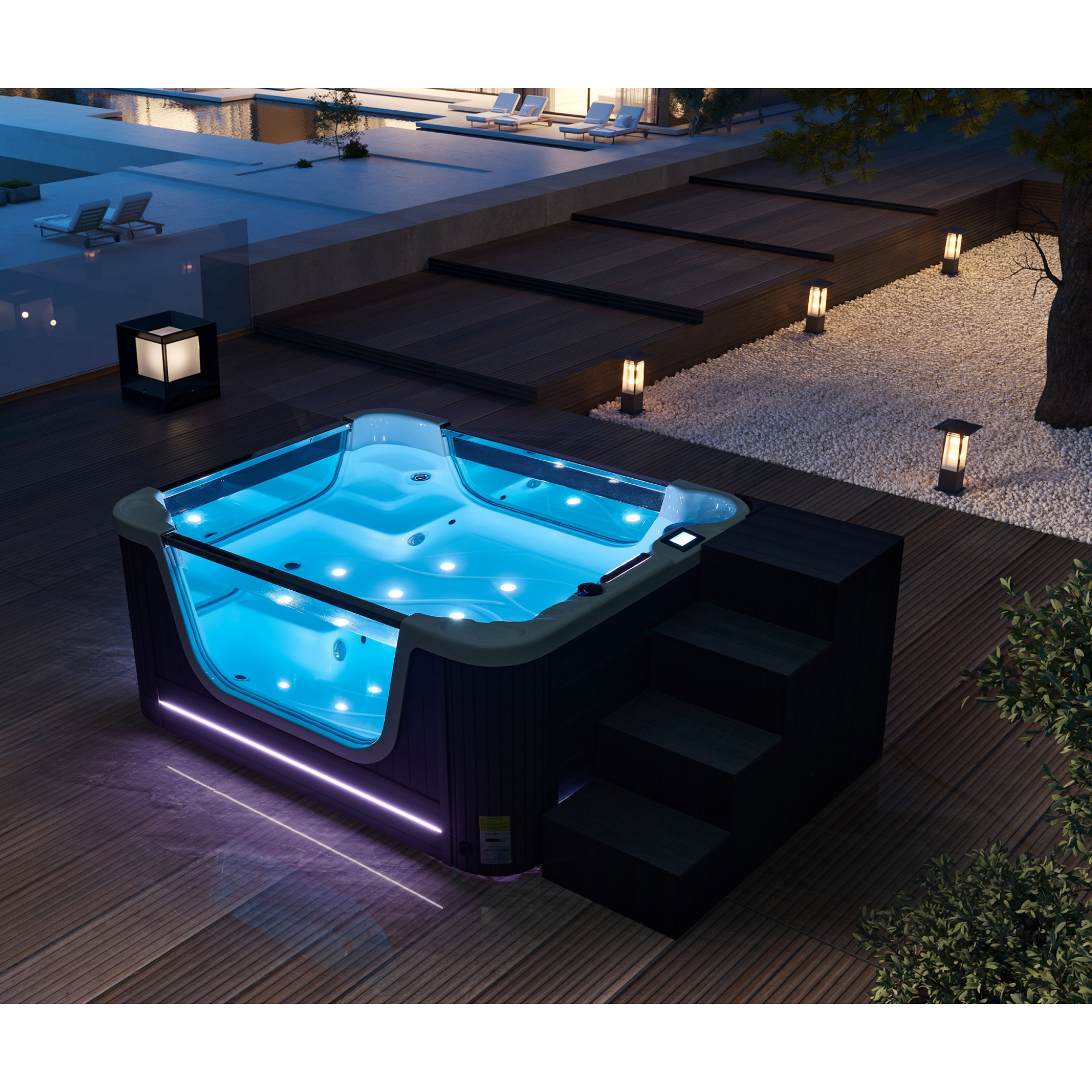 MINIPISCINA ESTERNO 250X160X95CM - SPA MINI POOL 3 GLASS SKY VIEW LUX SERIES BALBOA - 16 GETTI PROFESSIONAL - 3 POMPE - PER 5 PERSONE - TECH CON RISCALDATORE BALBOA PC FULL TOUCH TABLET - BLUETOOTH - OZONO - FONTANA ARABA- WI-FI CONNECTOR- STAIRCASE LED